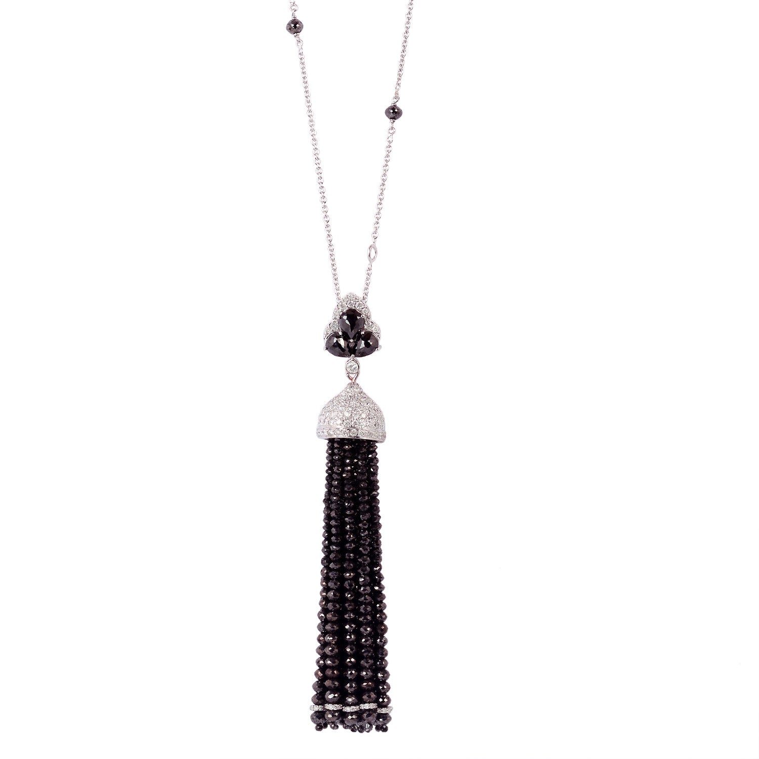 18K White Gold Black Diamond Tassel Necklace Luxury Statement Jewelry