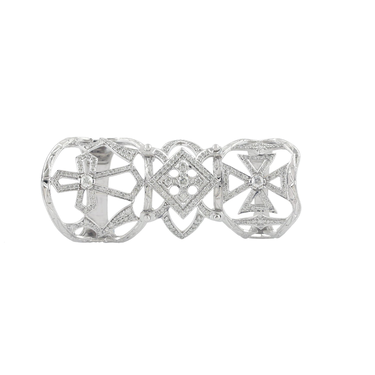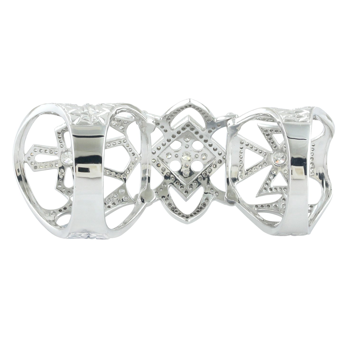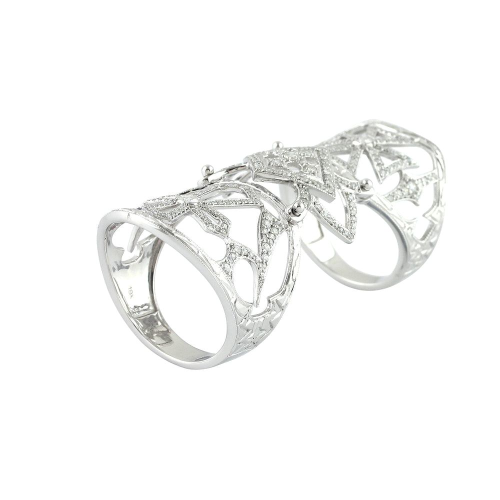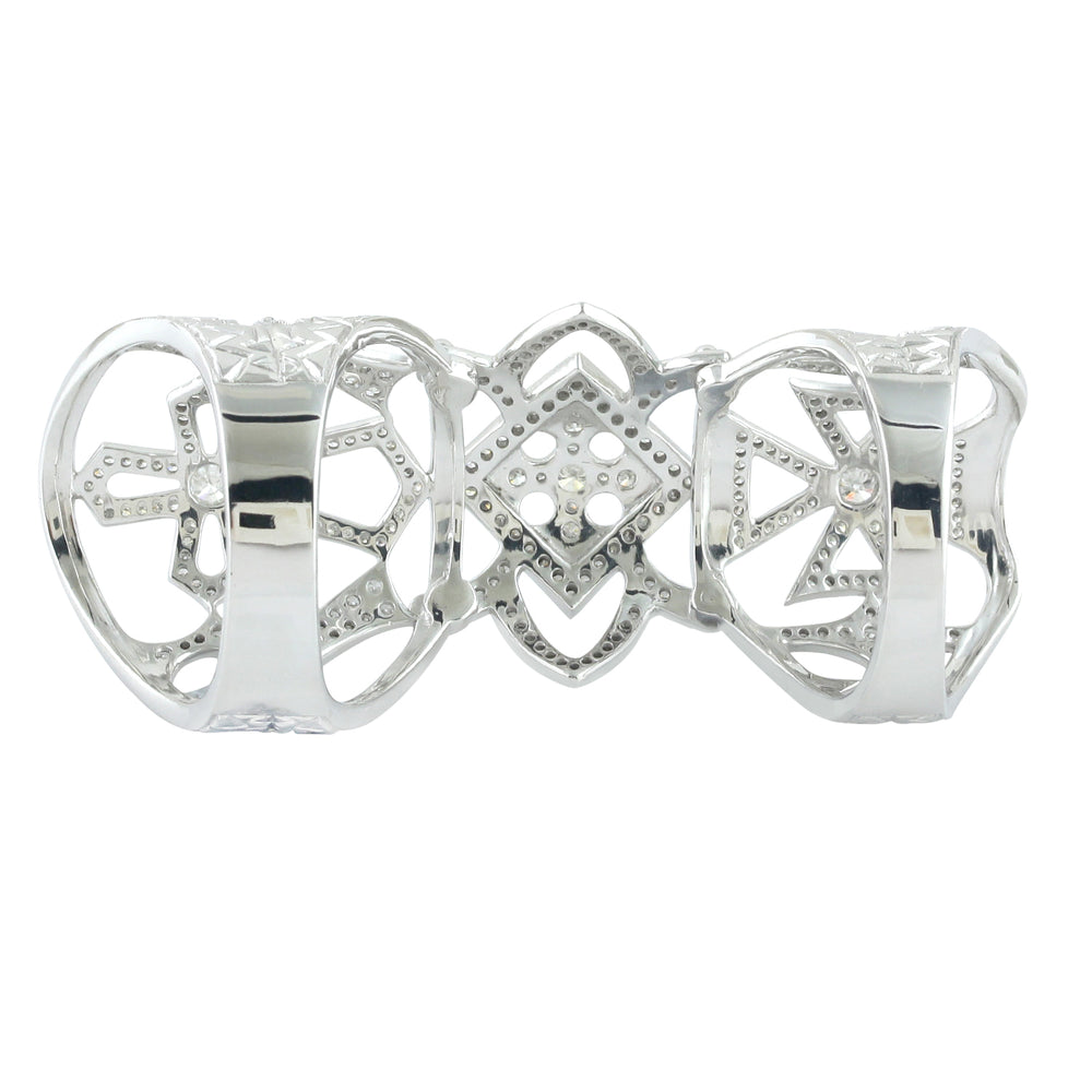 • 18k White Gold Pave Natural Diamond Wedding Full Knuckle Ring For Gift