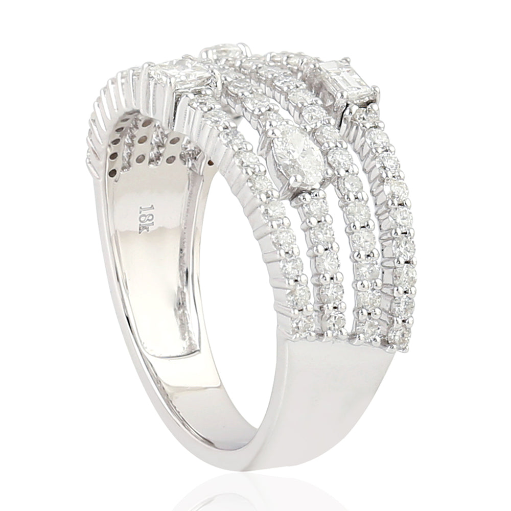 18k White Gold Pave Diamond Band Ring Handmade Jewelry Gift