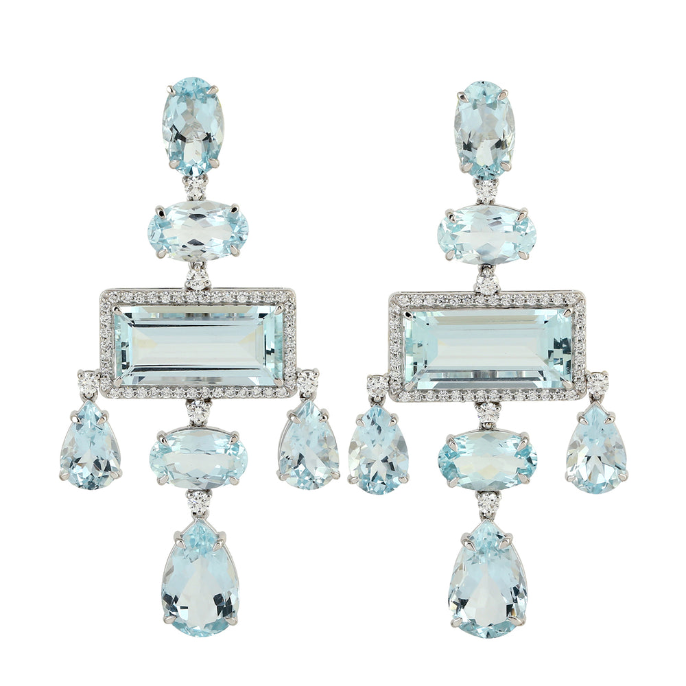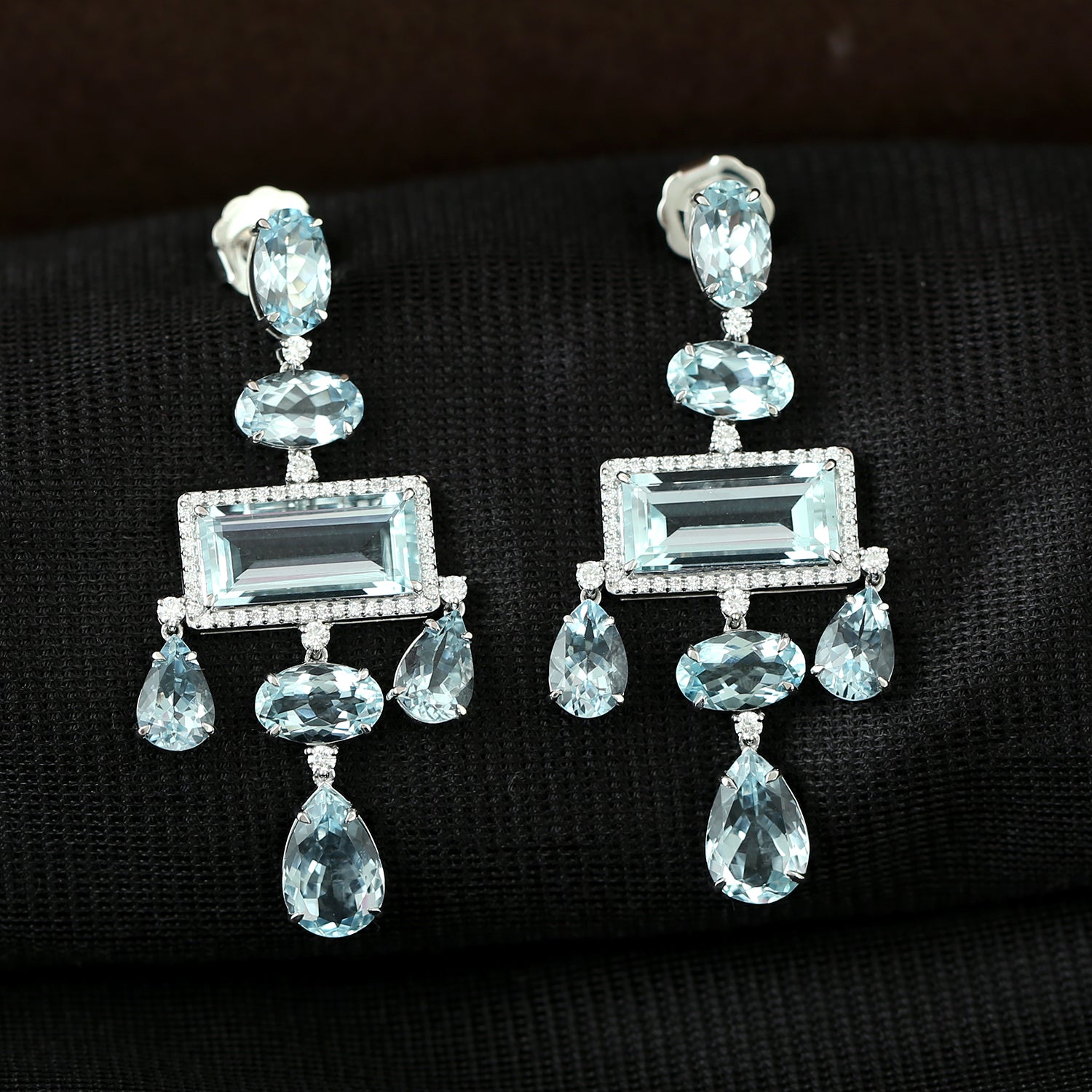 Prong Aquamarine Gemstone Pave Diamond Chandelier in 18K White Gold