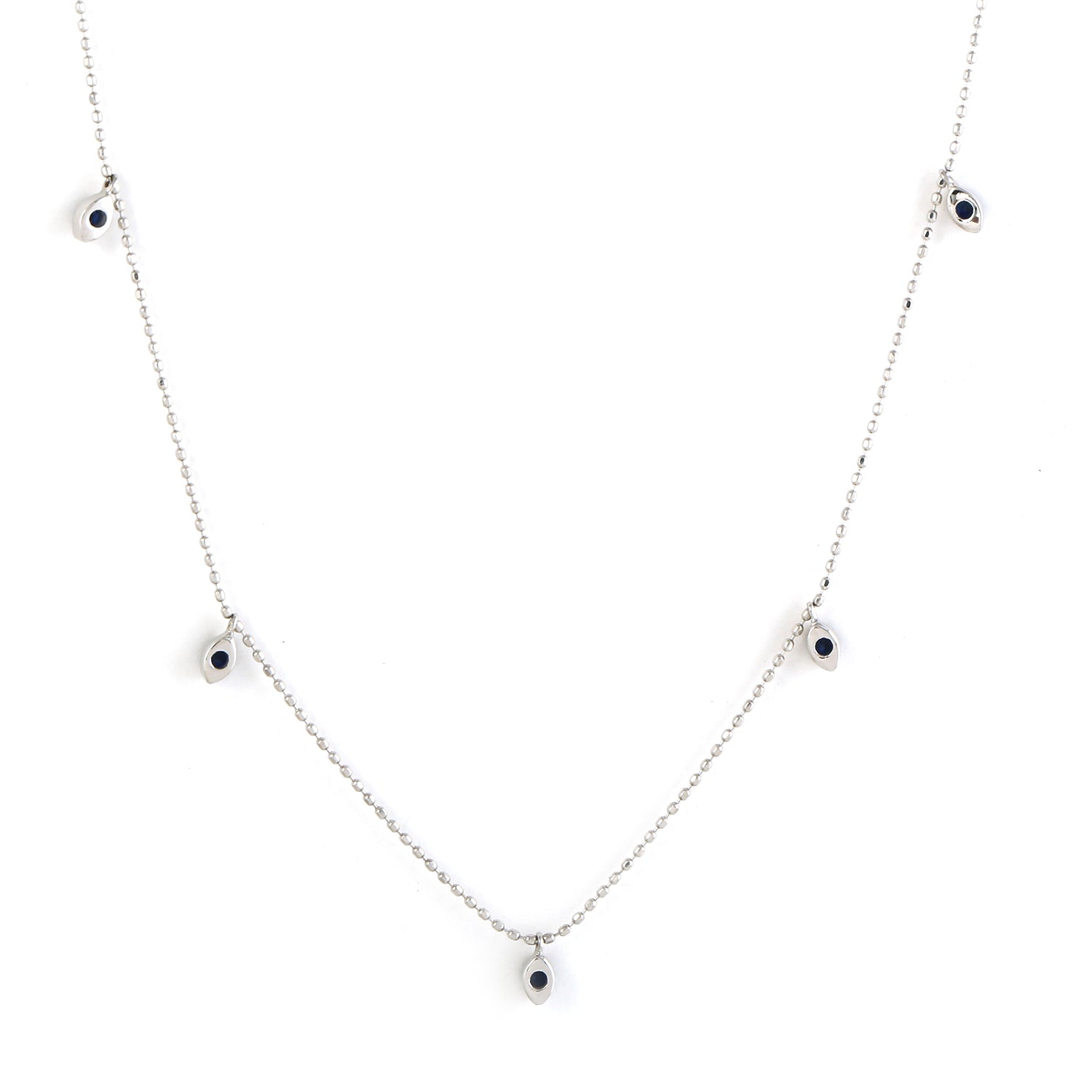 18K White Gold Prong Blue Sapphire Beads Chain Princess Necklace
