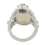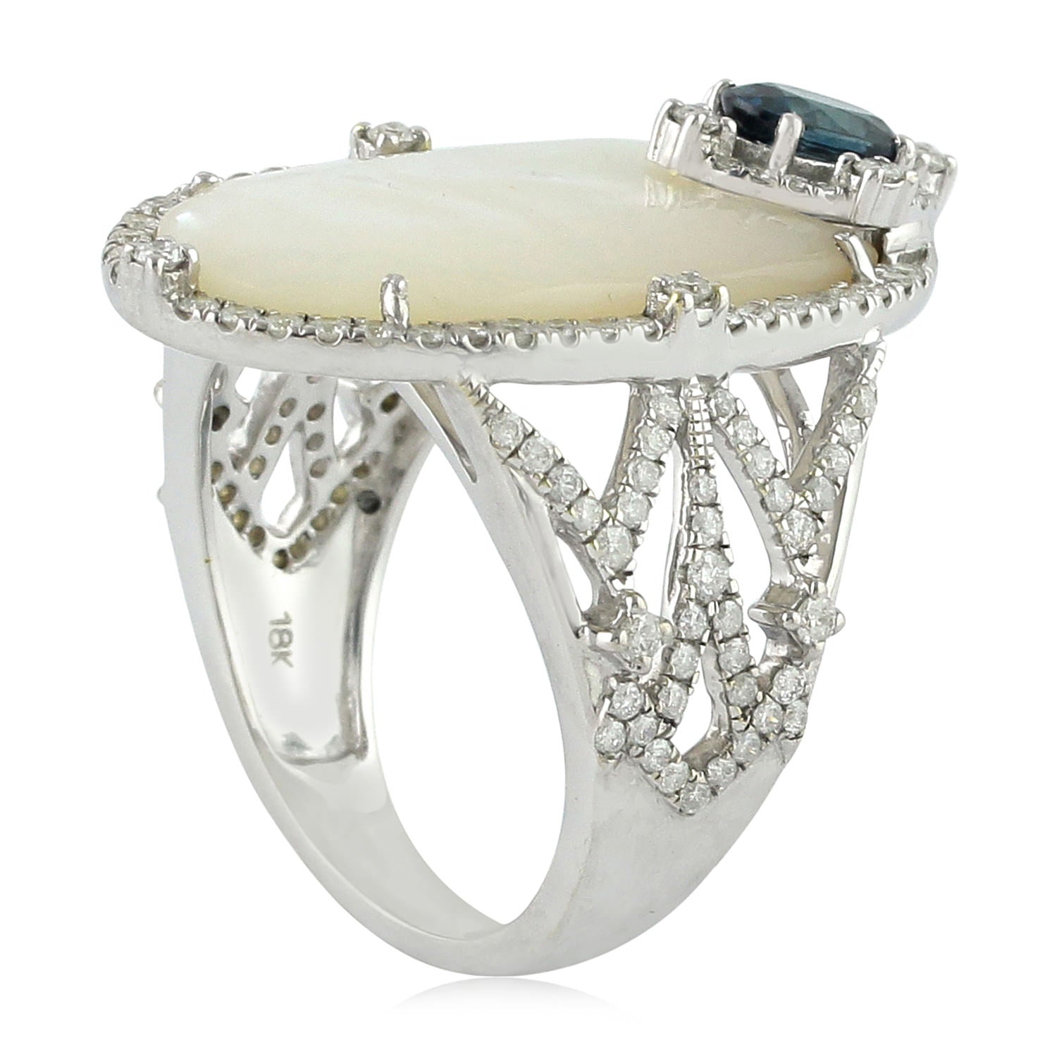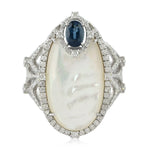 18K White Gold Prong MOP June Birthstone Oval Blue Sapphire Cocktail Ring