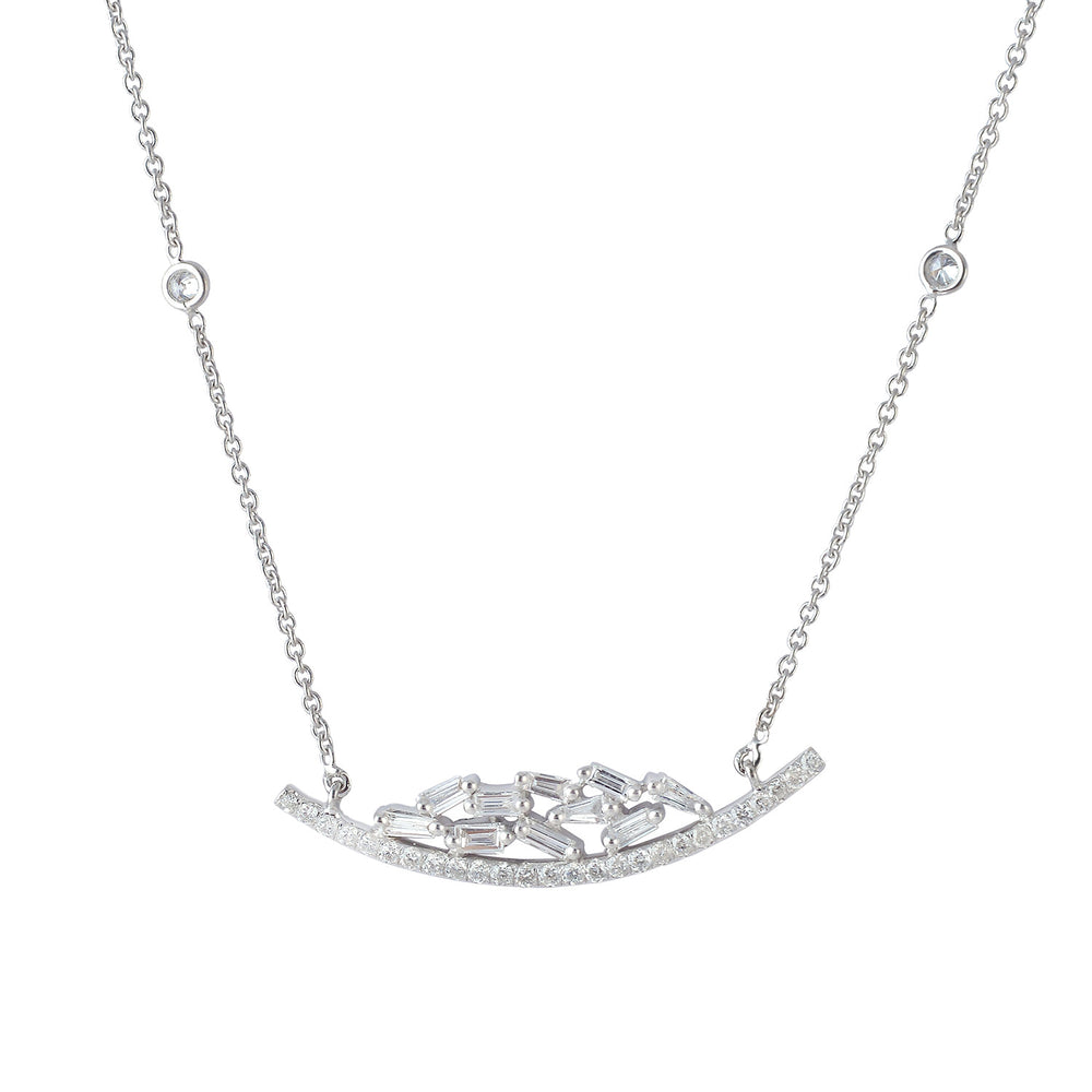 • 18K White Gold Prong Natural Baguette Diamond Choker Necklace For Anniversary Gifts