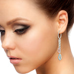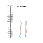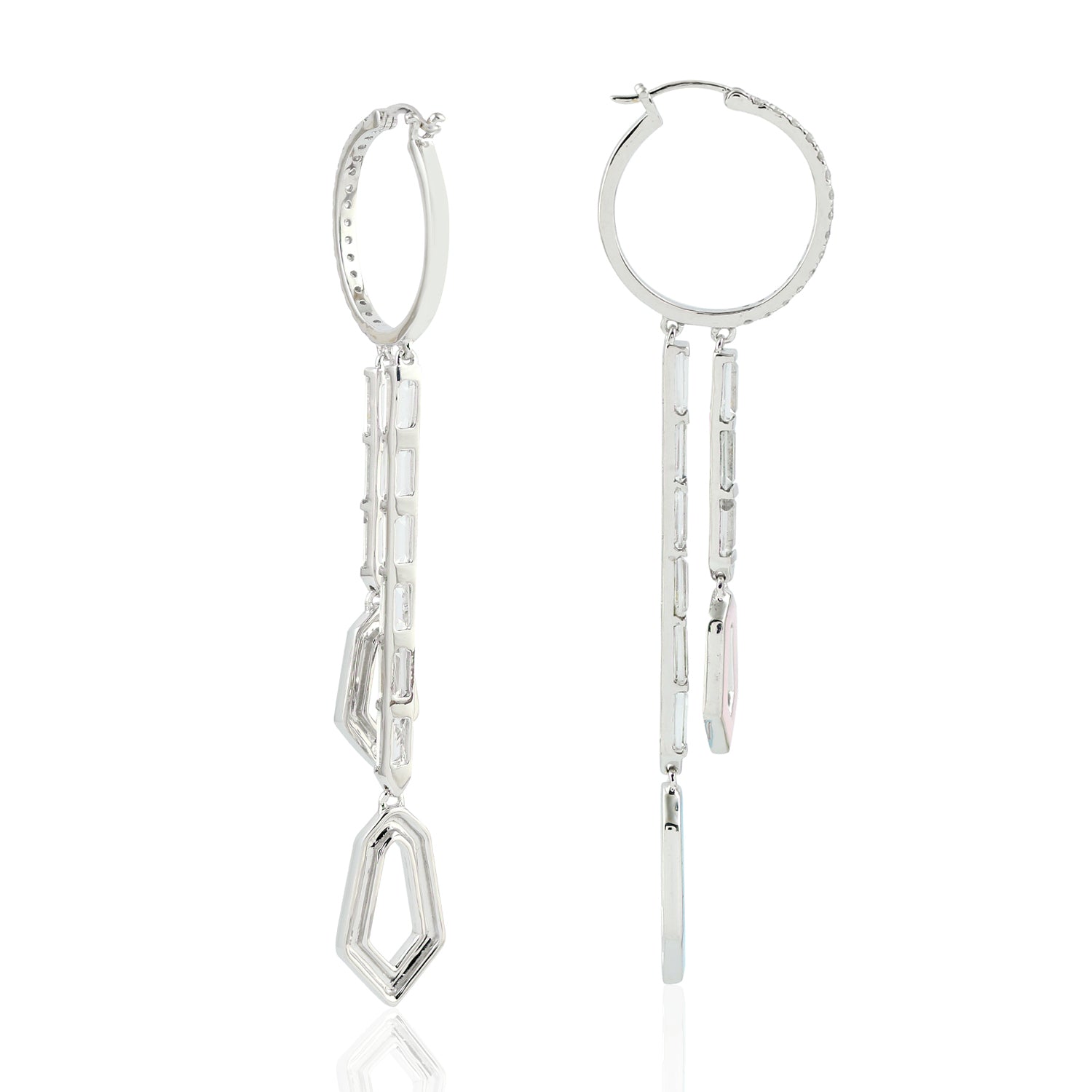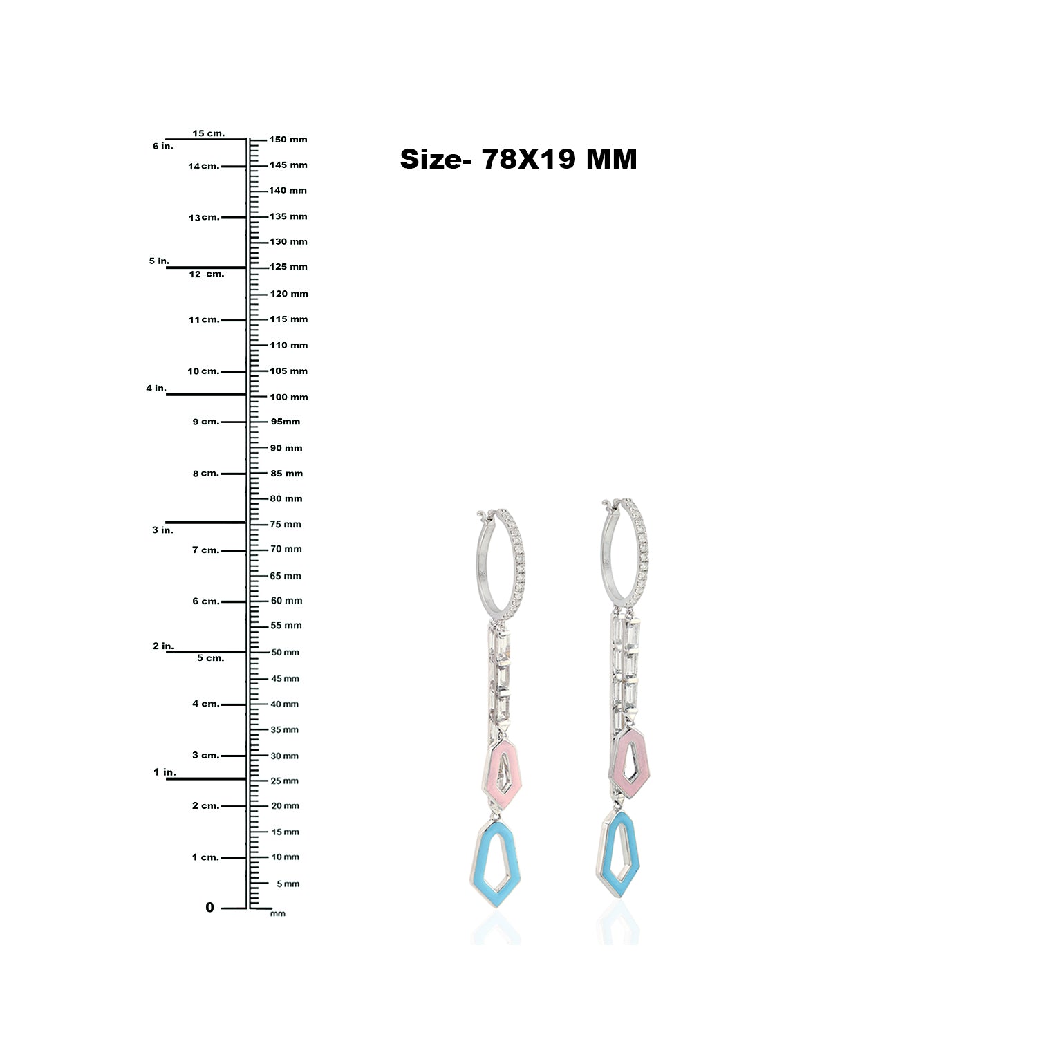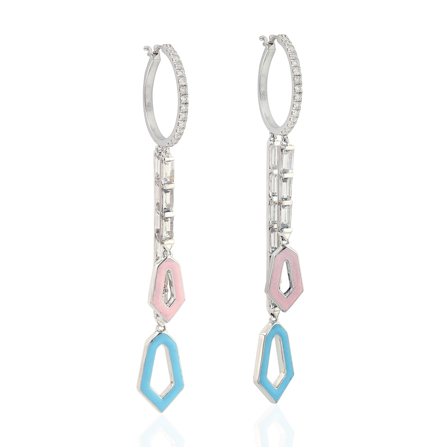 18k White Gold Baguette Cut Topaz Pave Diamond Enamel Hoop Earrings