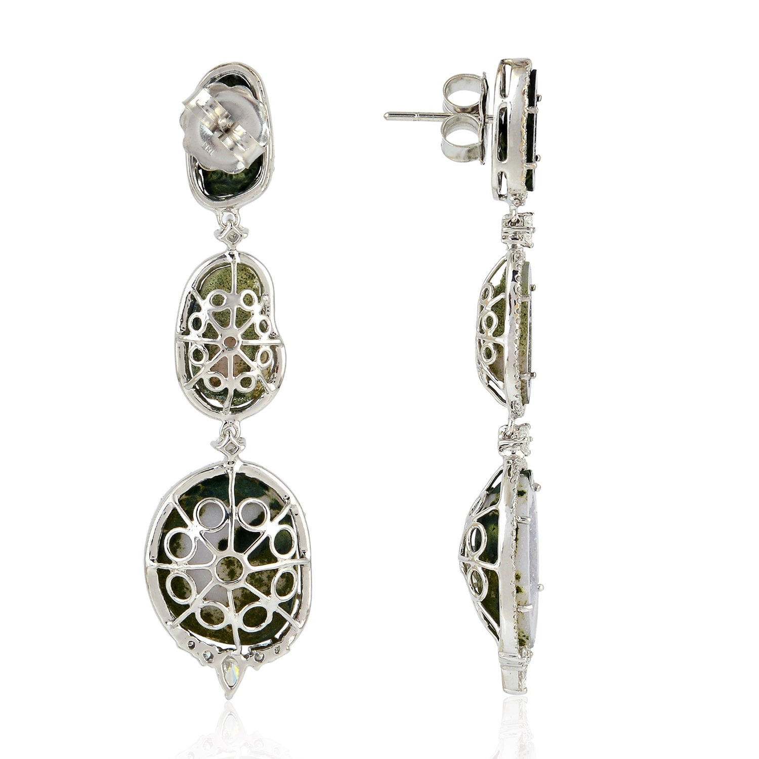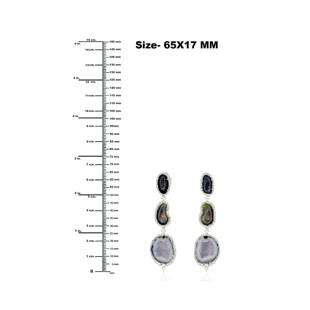 18K White Gold Uneven Geode Gemstone Pave Diamond Dangler Earrings
