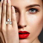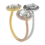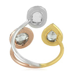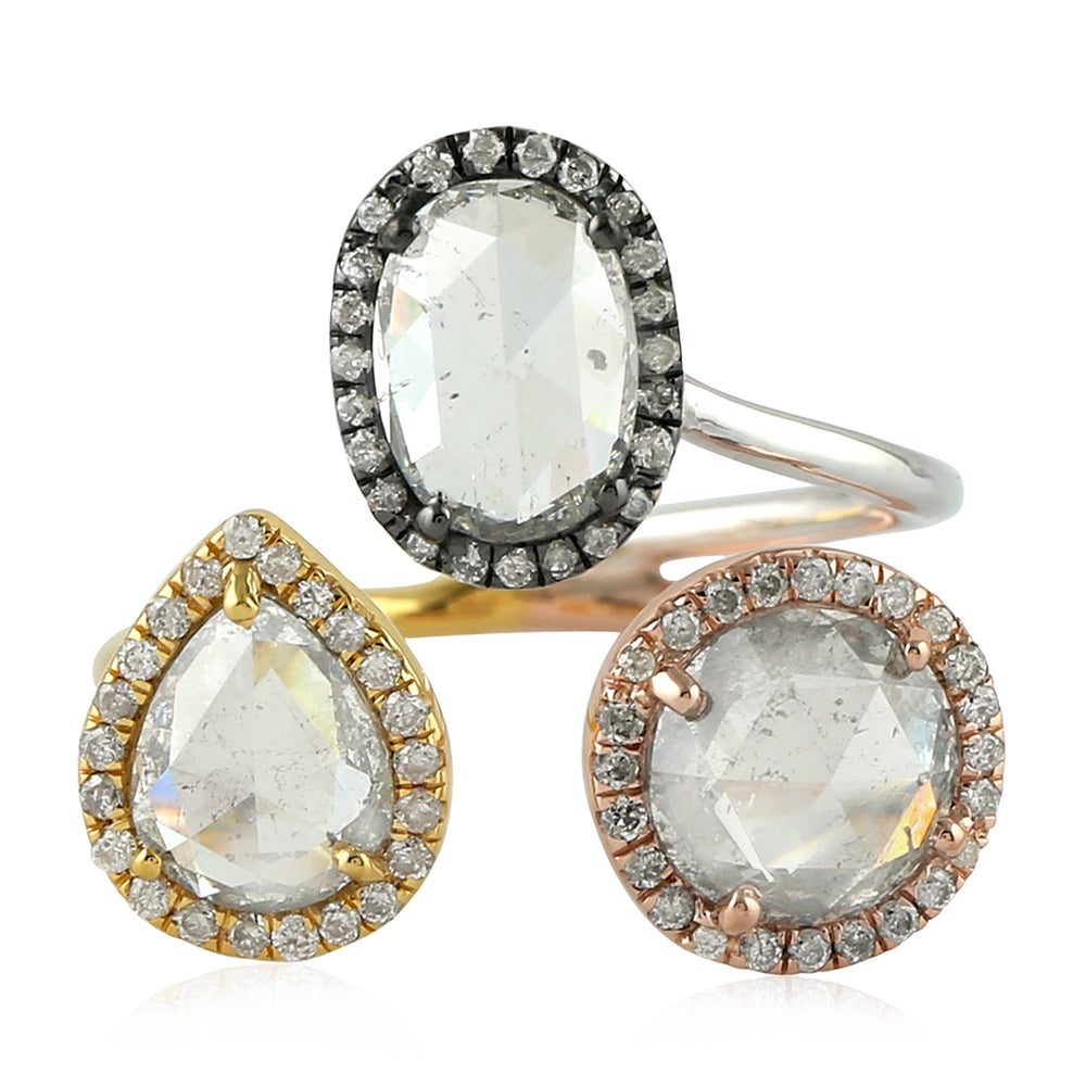 18K White Yellow Rose Gold Mix Cut Rose Cut Diamond 3 Tone Between The Finger Ring