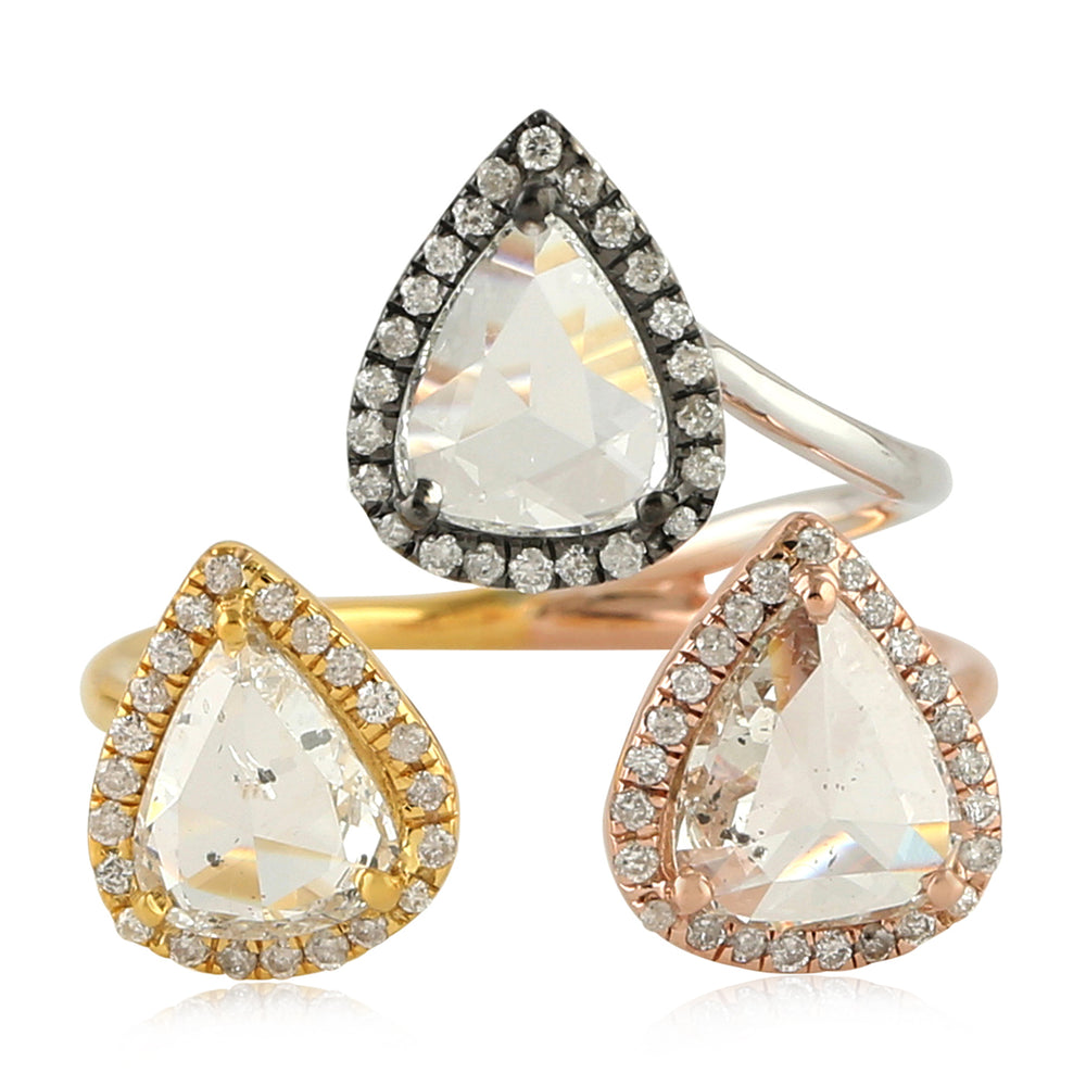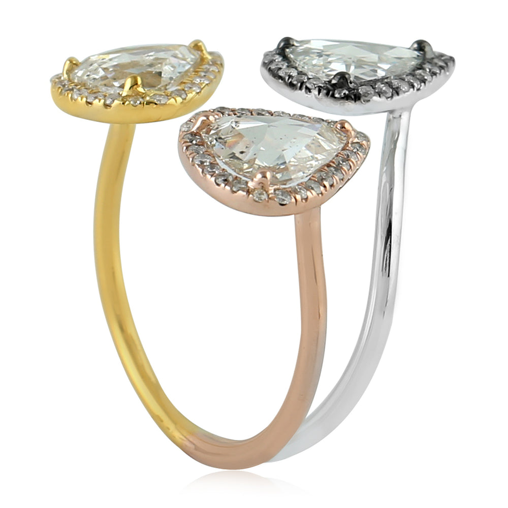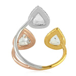 18K White Yellow Rose Gold Rose Cut Diamond 3 Tone Between The Finger Ring