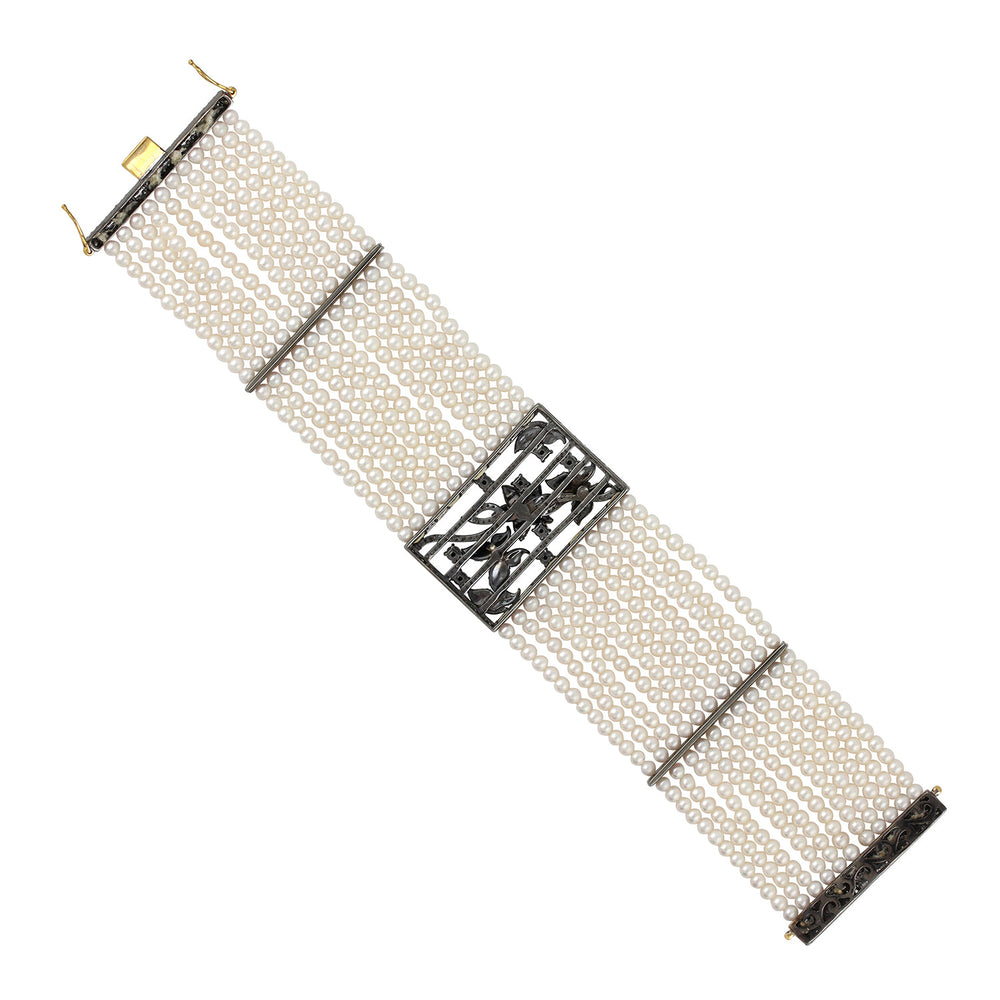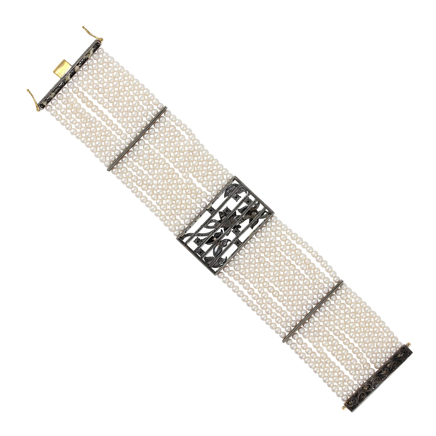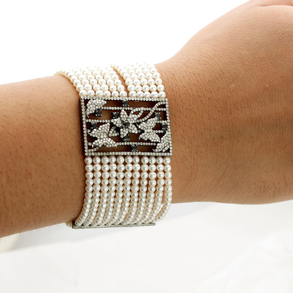 18K Yellow Gold 925 Silver Beaded Pearl Round Spinel Pave Diamond Designer Bracelet Jewelry