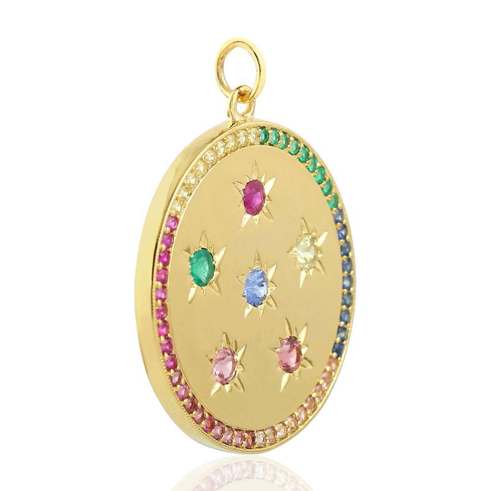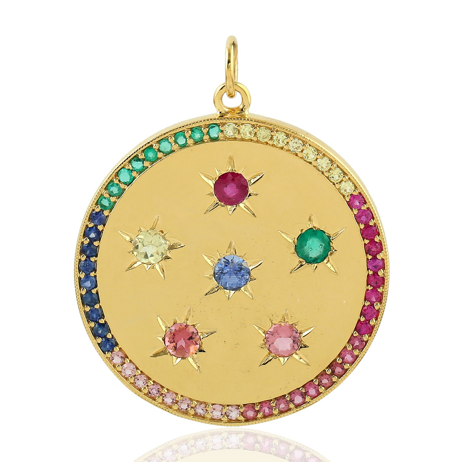 18K Yellow Gold Bezel Set Multi Gemstone Designer Pendant For Thanks Giving Gifts