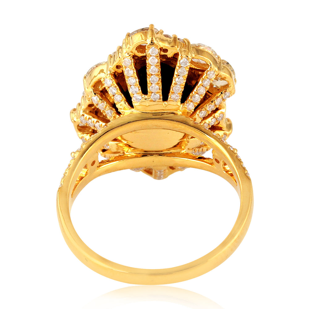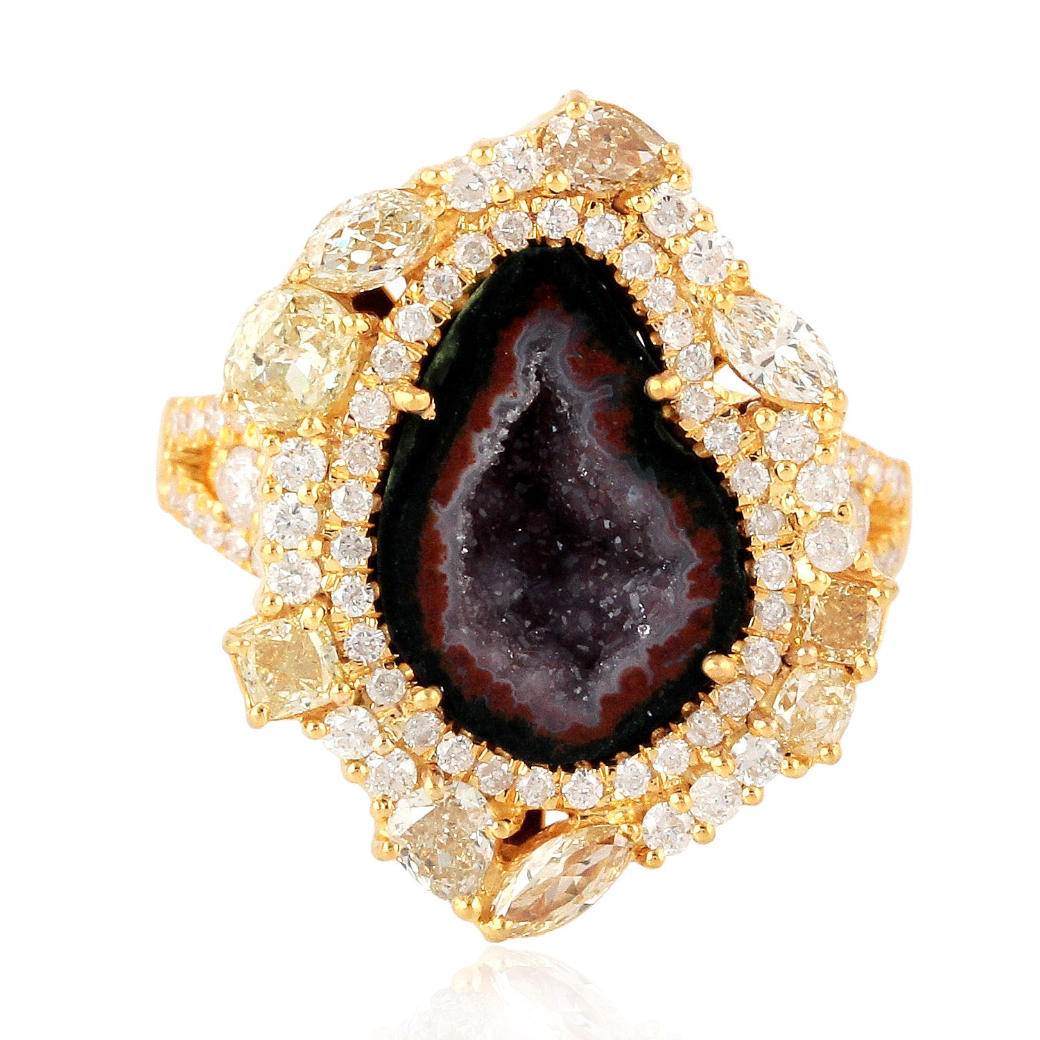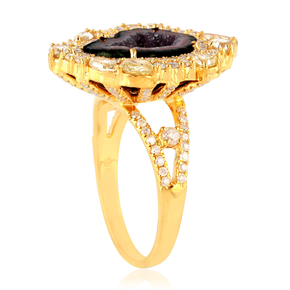 18k Yellow Gold Prong Rose Cut Diamond Uneven Geode Designer Ring