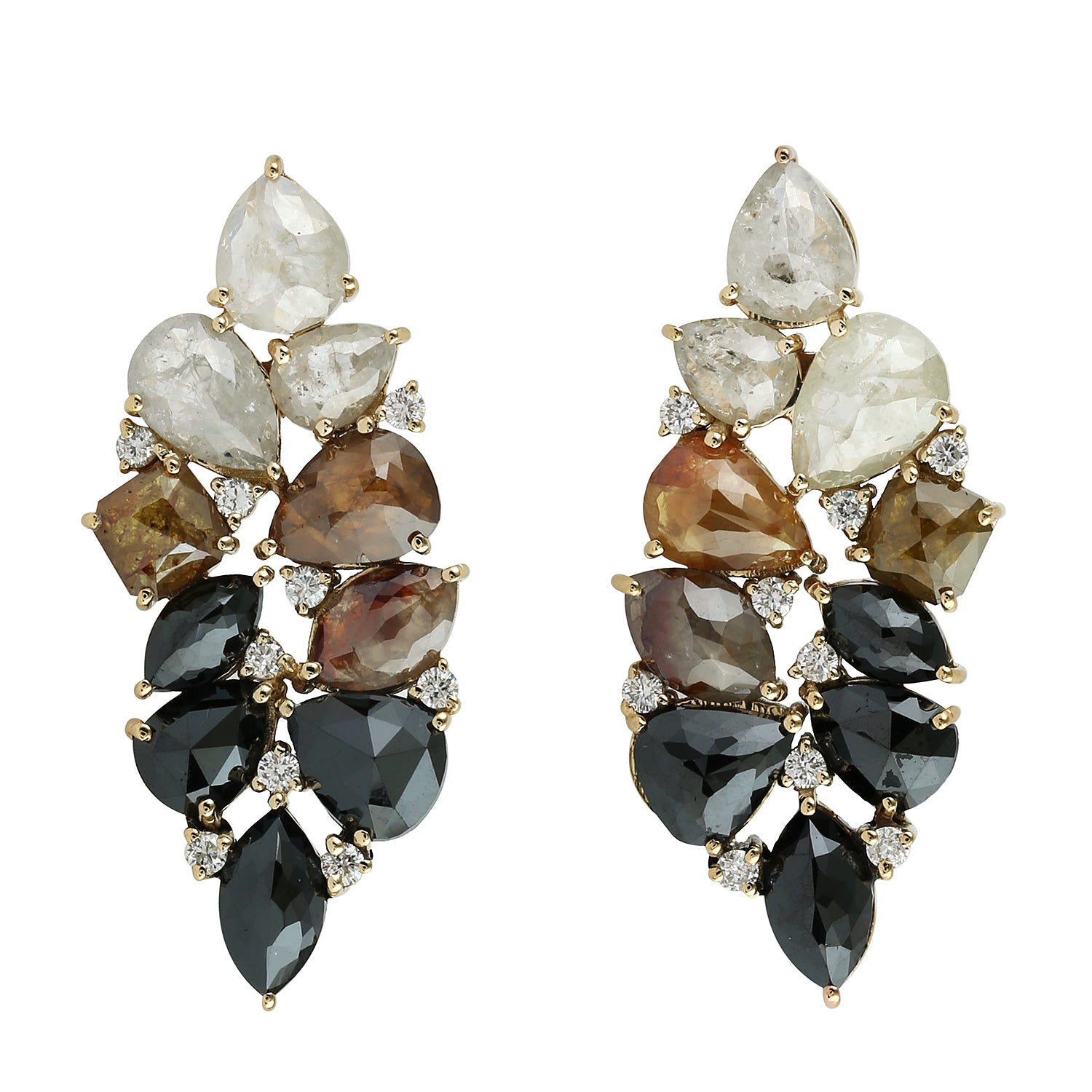 18k Yellow Gold Pear Cut Ice Diamond Dangle Earrings Women's Jewelry
