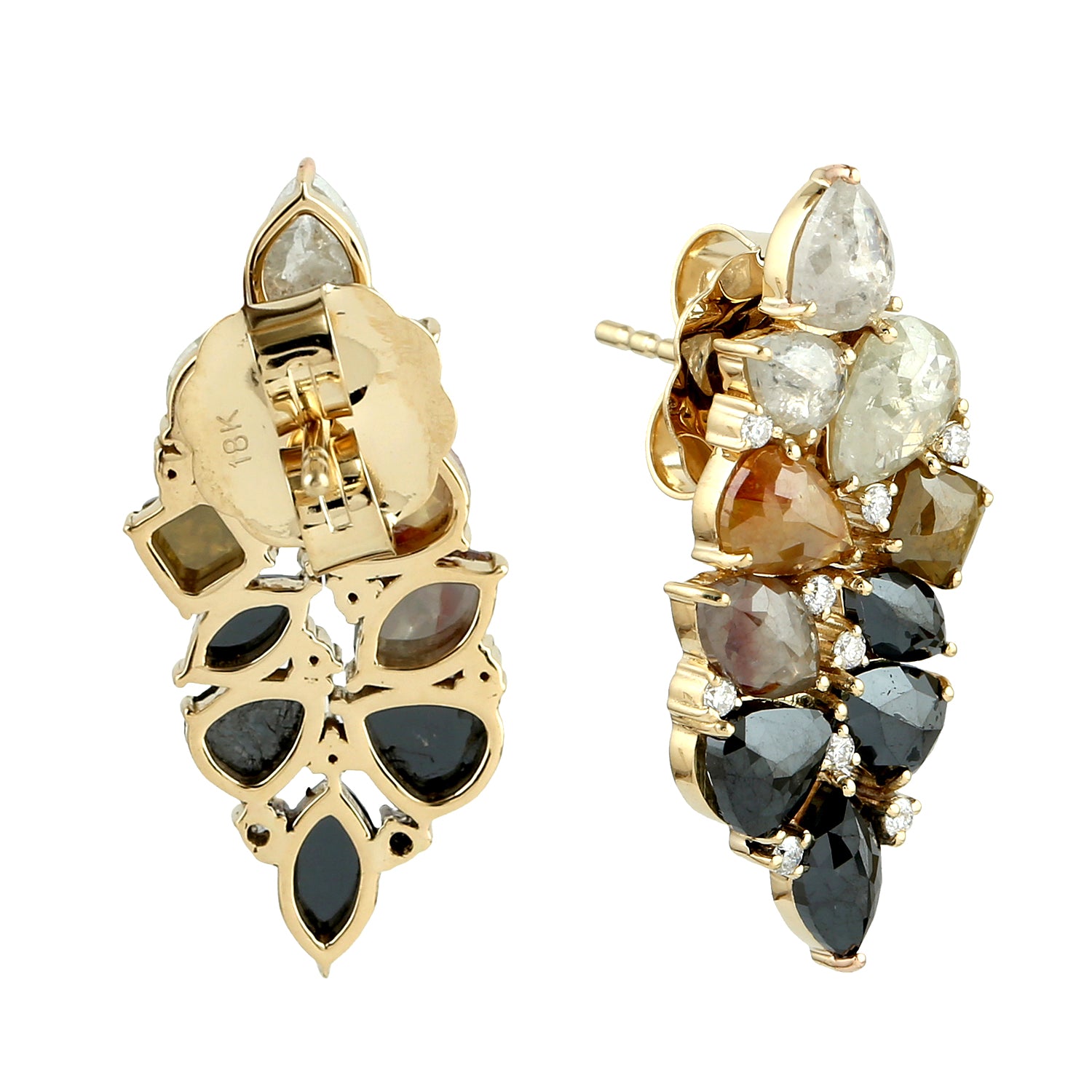 • 18k Yellow Gold Pear Cut Ice Diamond Dangle Earrings Women's Jewelry