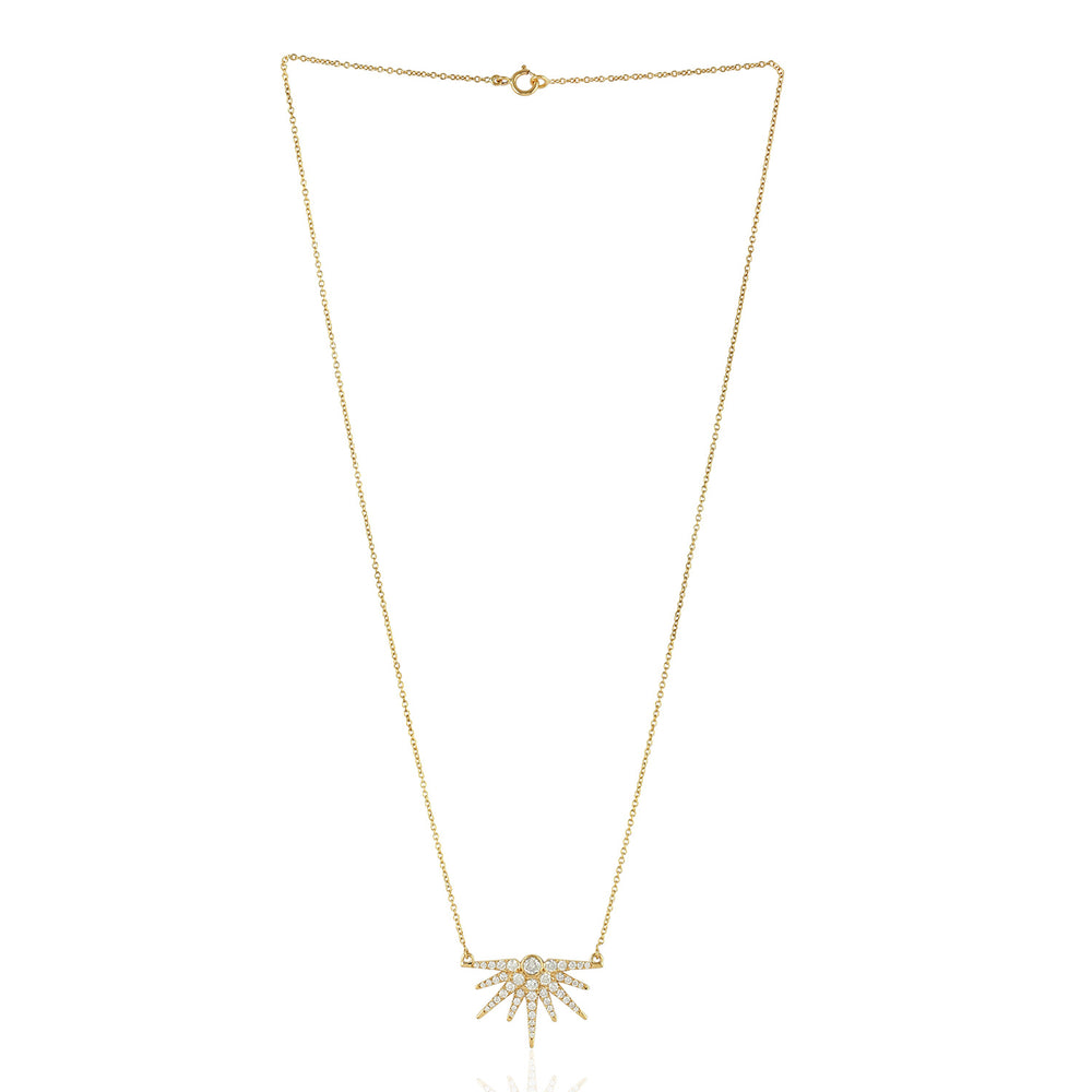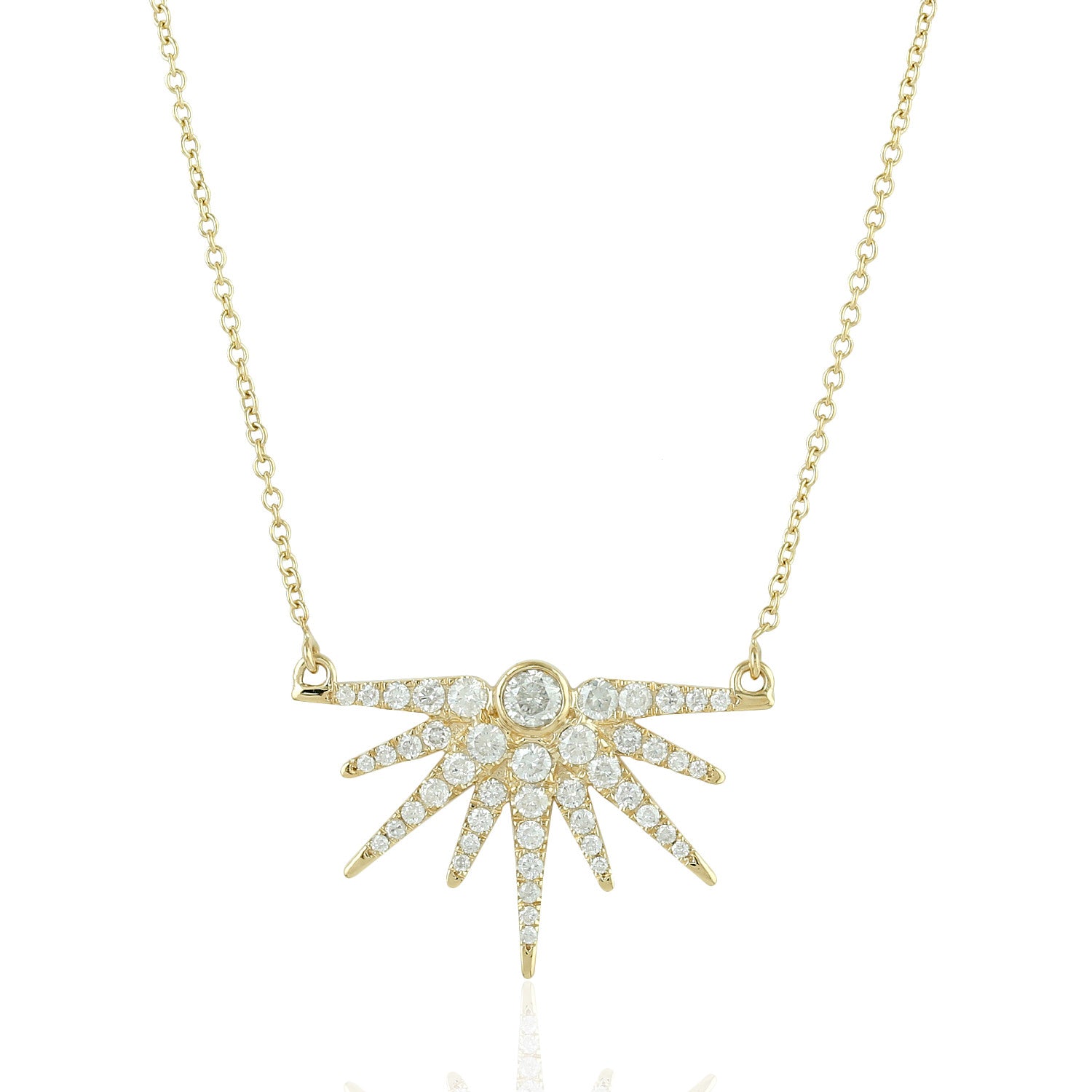18K Yellow Gold Micro Pave Diamond Starburst Choker Necklace