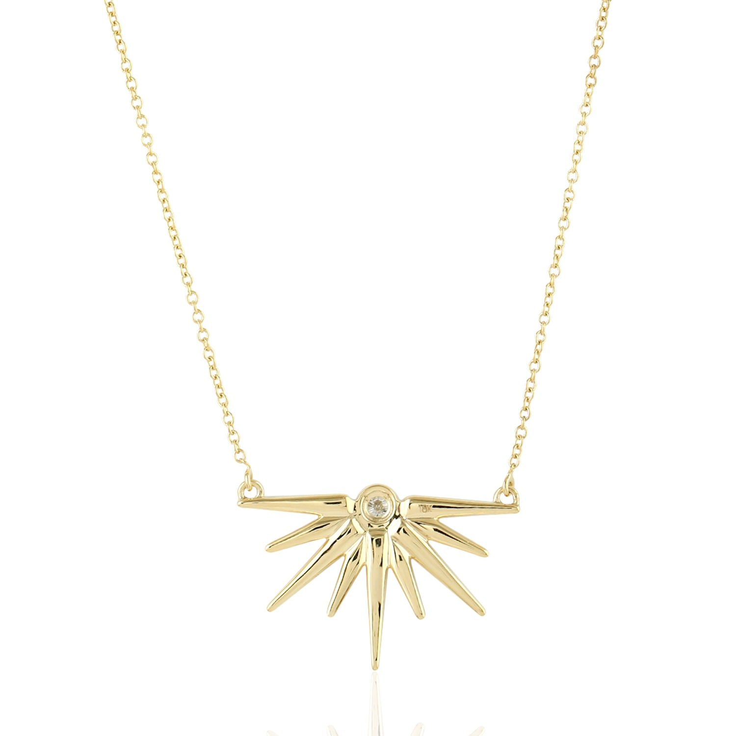 • 18K Yellow Gold Micro Pave Diamond Starburst Choker Necklace