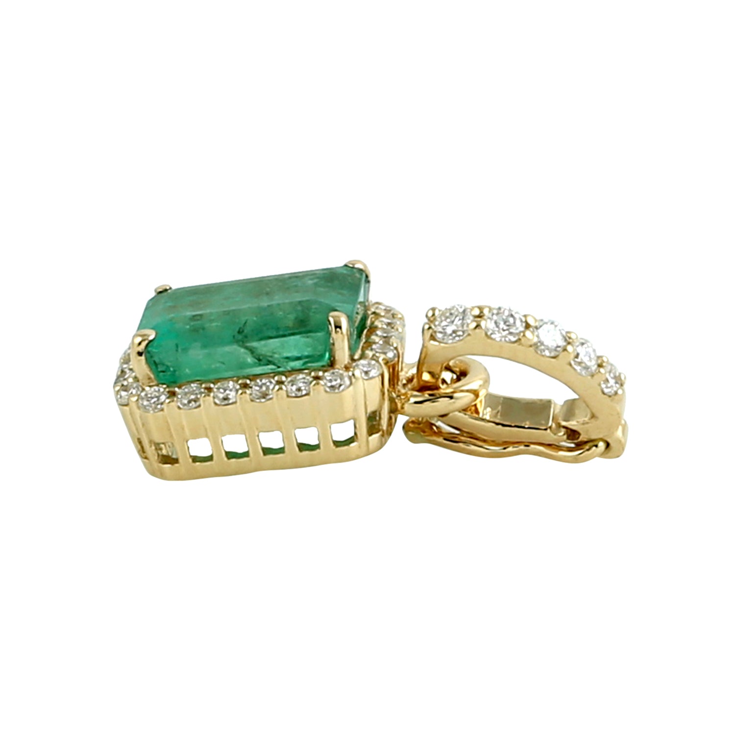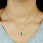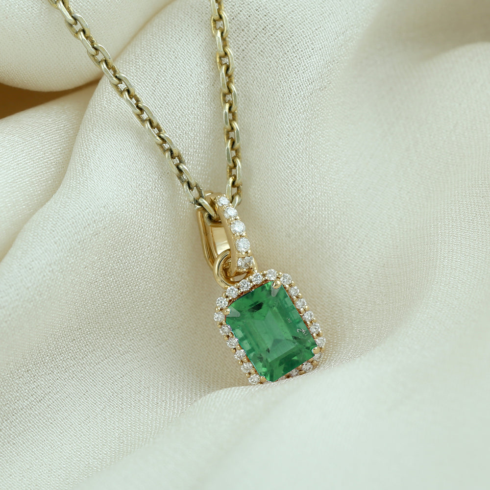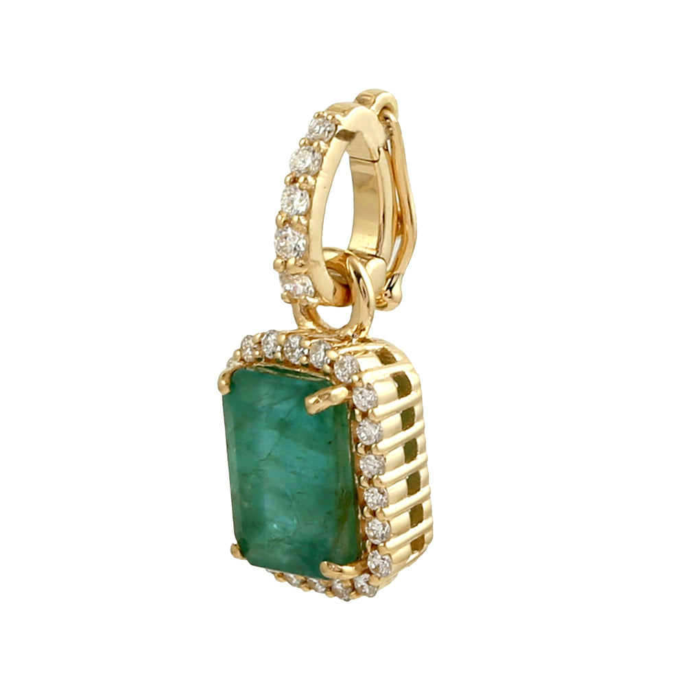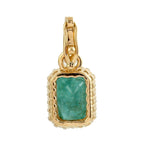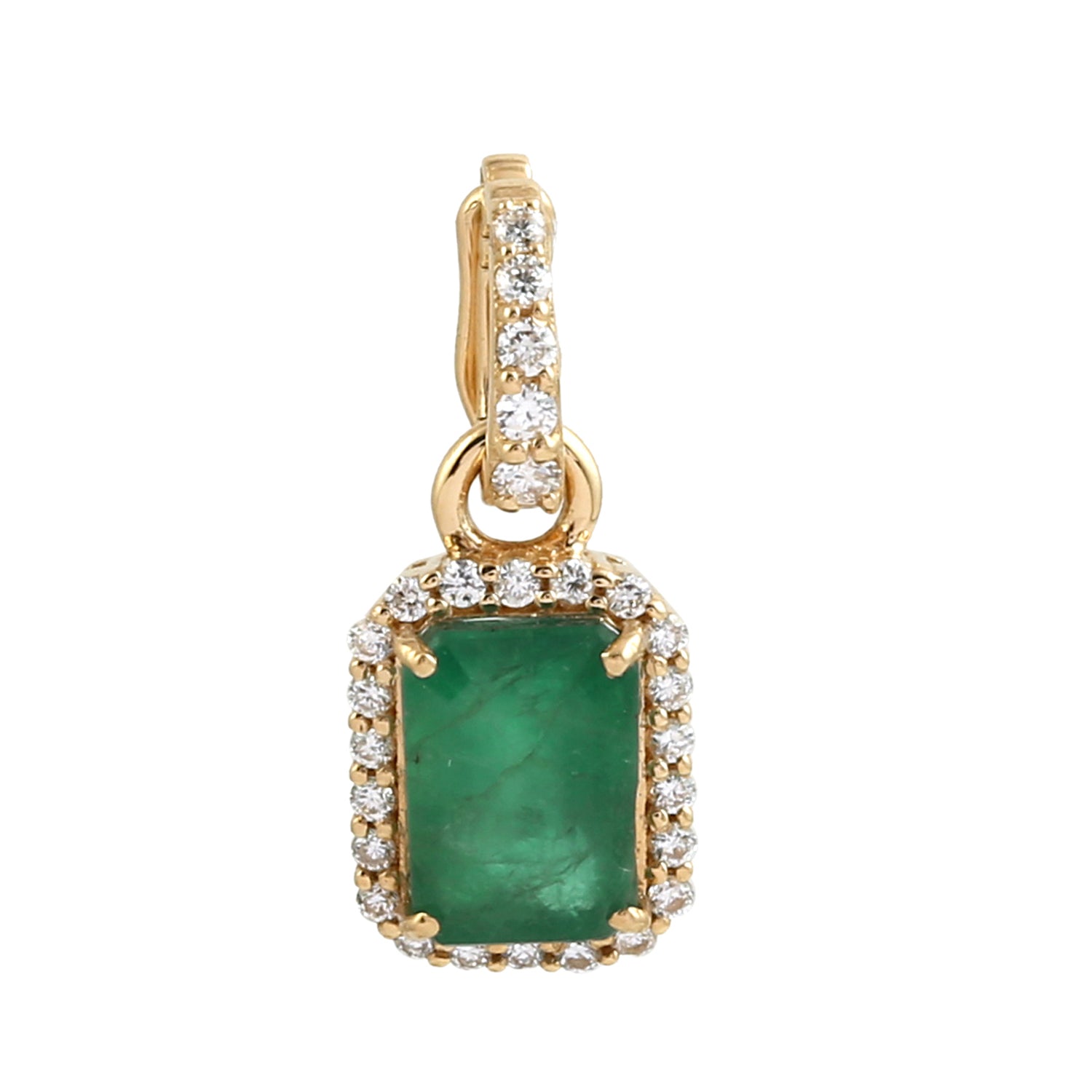 18K Yellow Gold Octagon Cut Emerald Pave Diamond Charm Pendant Jewelry
