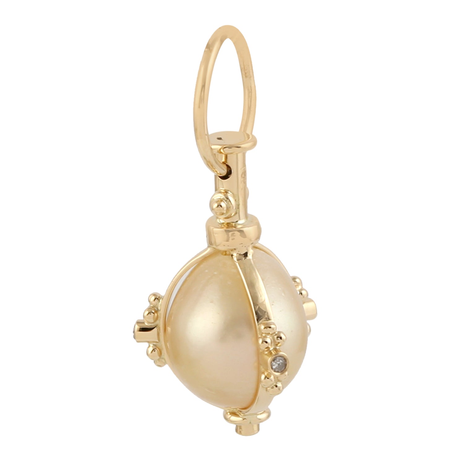 18k Yellow Gold South Pearl Pave Diamond Designer Charm Pendant