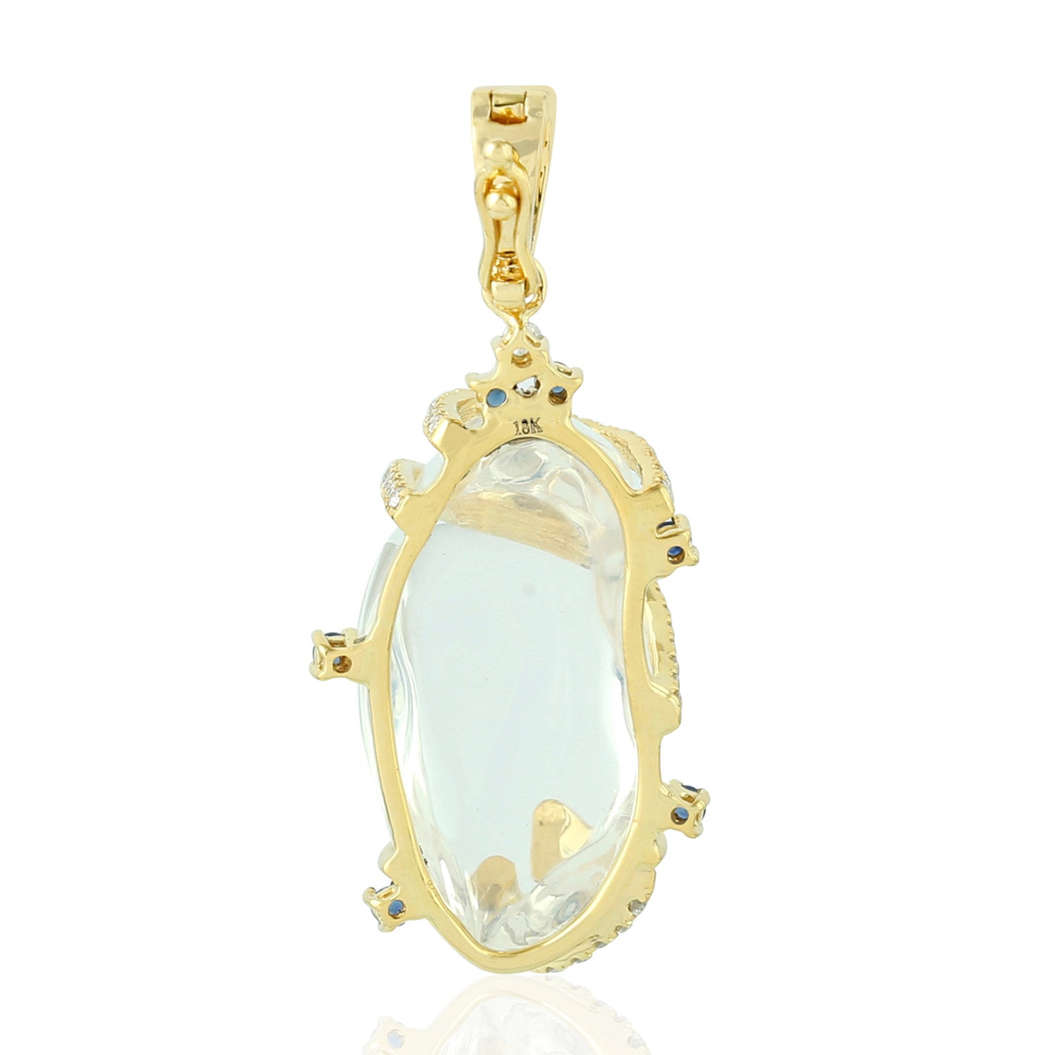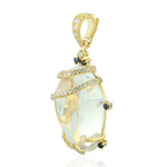 Opal Prong Pendant with Blue Sapphire & Pave Diamonds in Gold – Handmade Designer Jewelry Gift for Her
