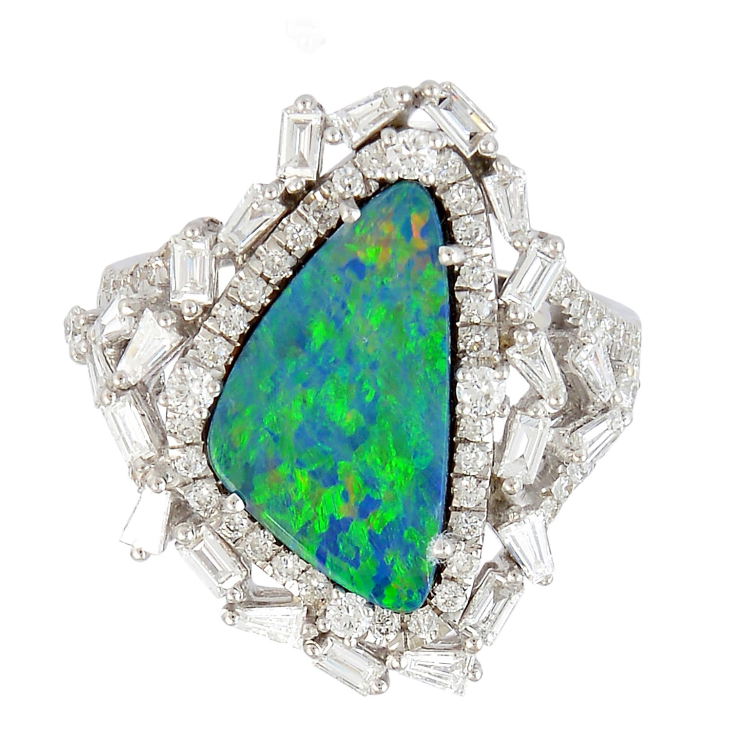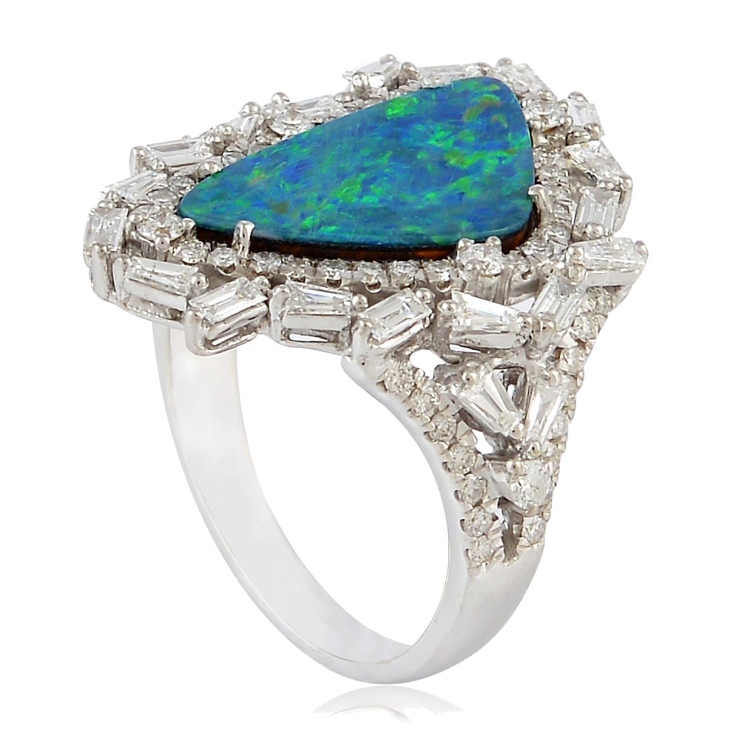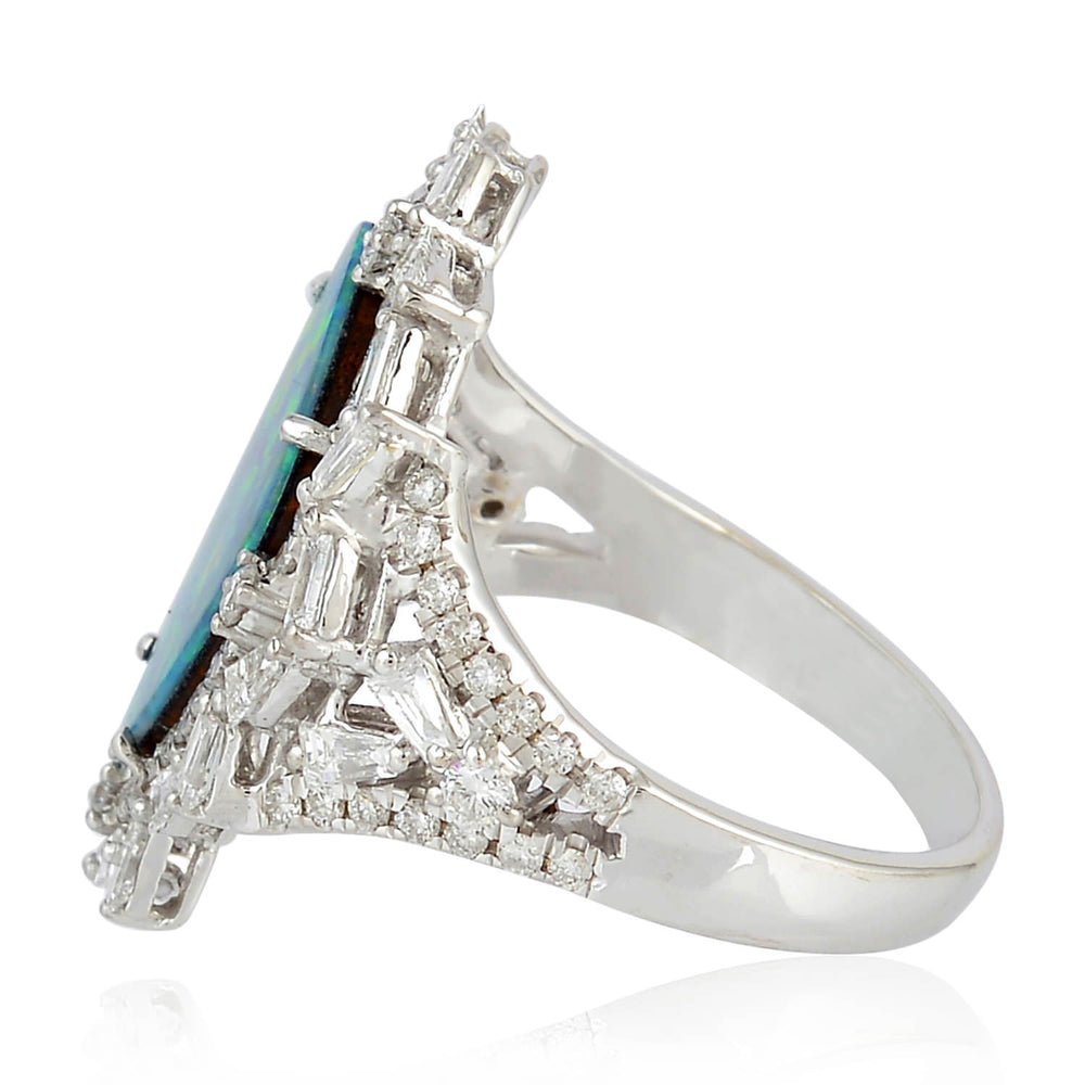 Opal Doublet & Baguette Cut Diamond Designer Ring in 18K White Gold – Fine Jewelry Gift for Her