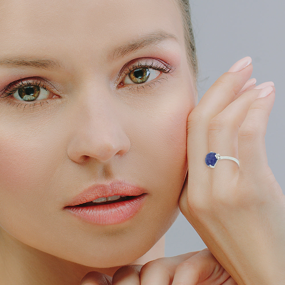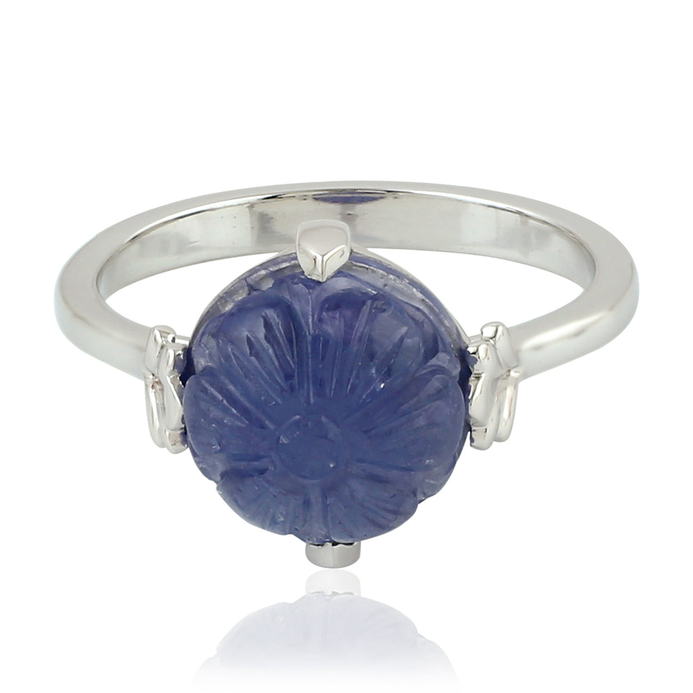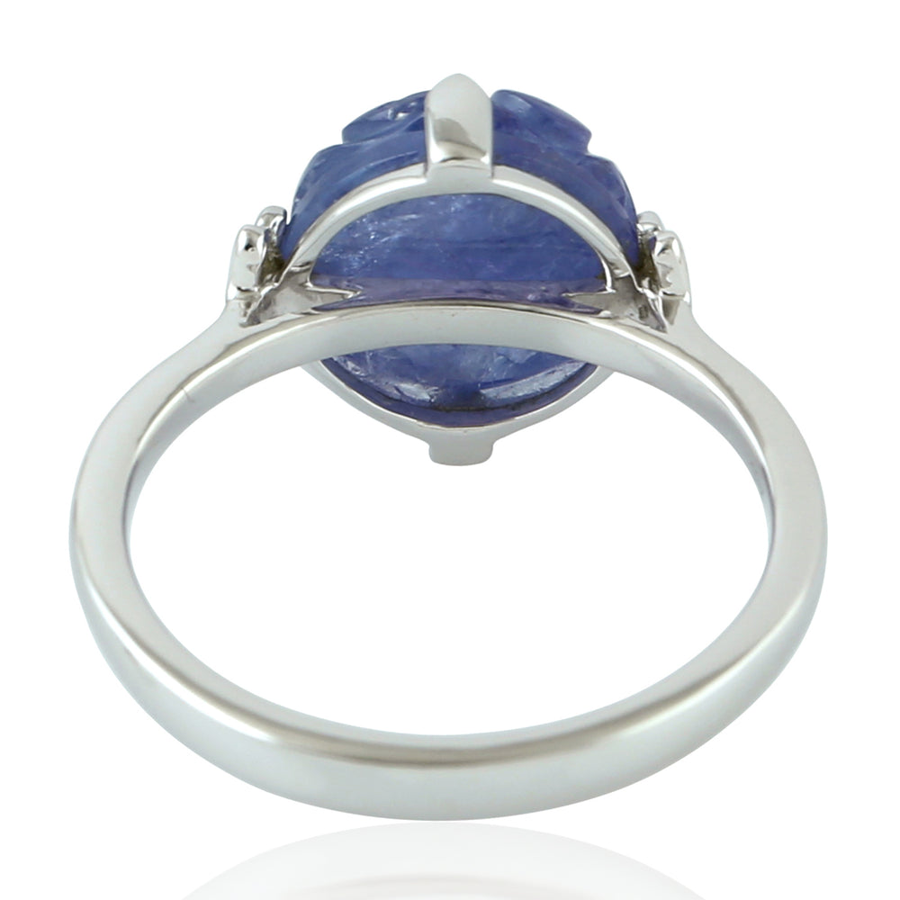 Carved Tanzanite Designer Ring in 18K White Gold – Elegant Jewelry Gift for Her
