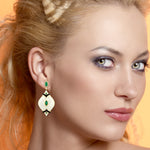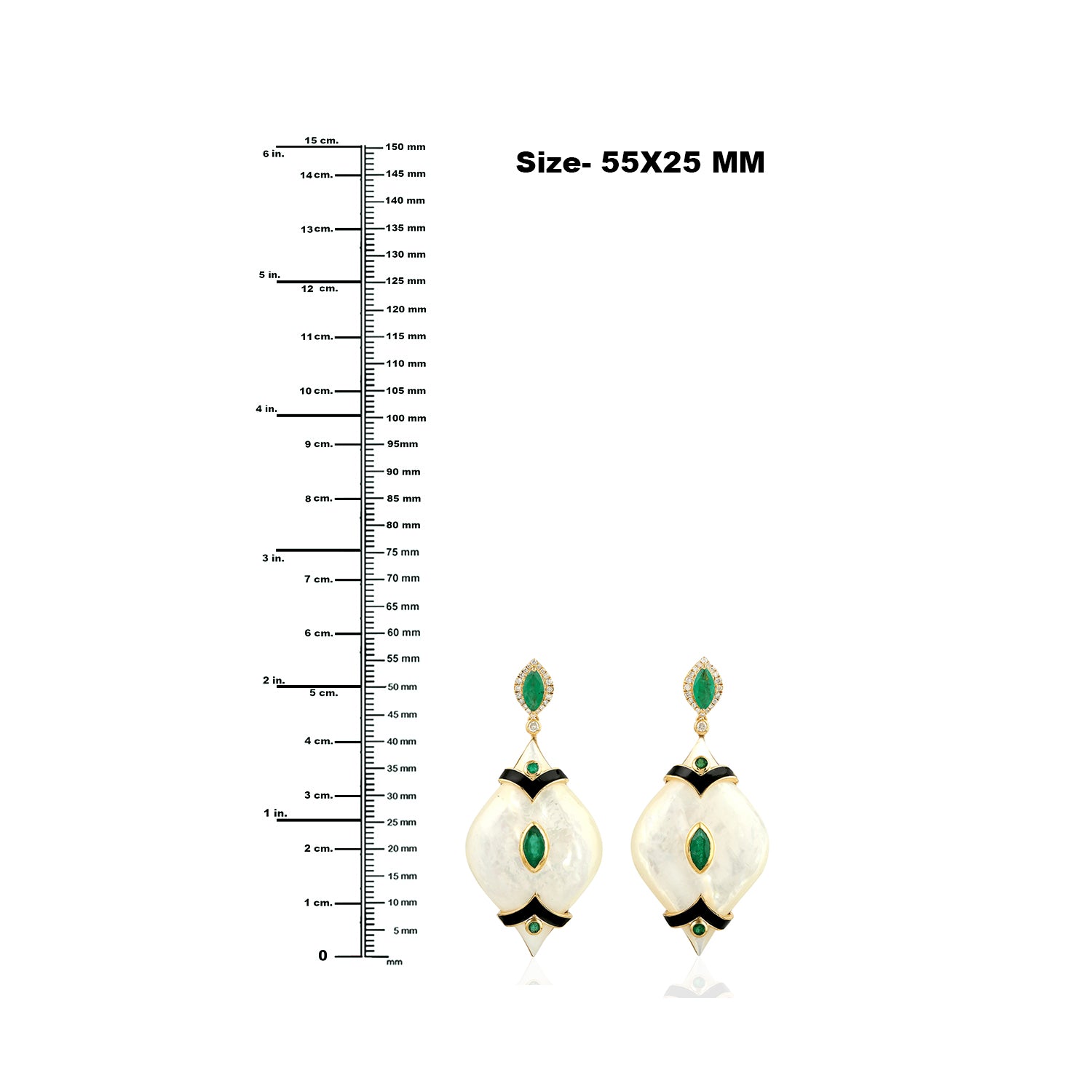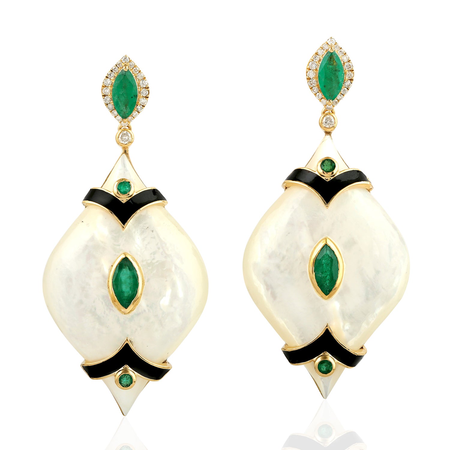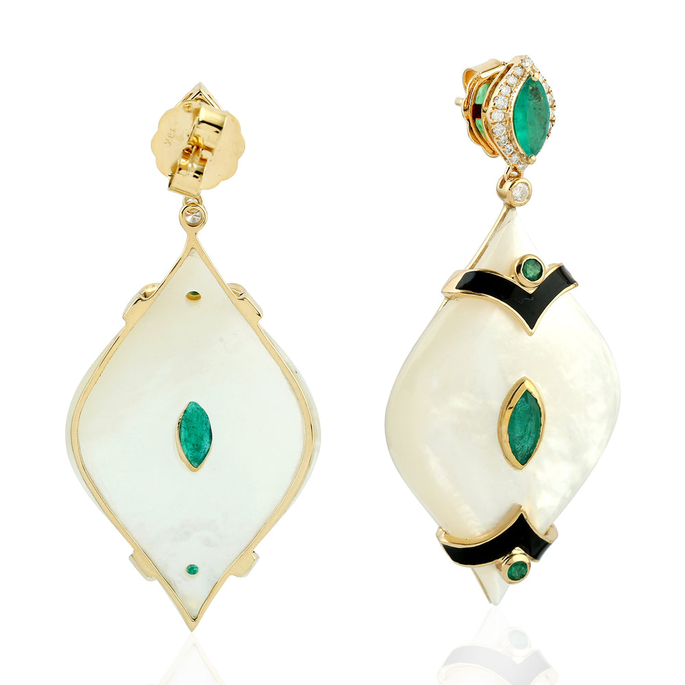 Emerald & Mop Gemstone Pave Diamond Enamel Dangle Earrings In Gold