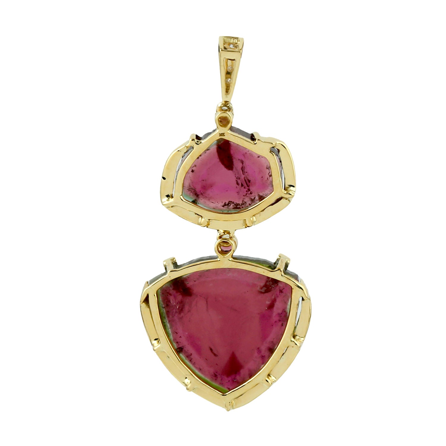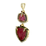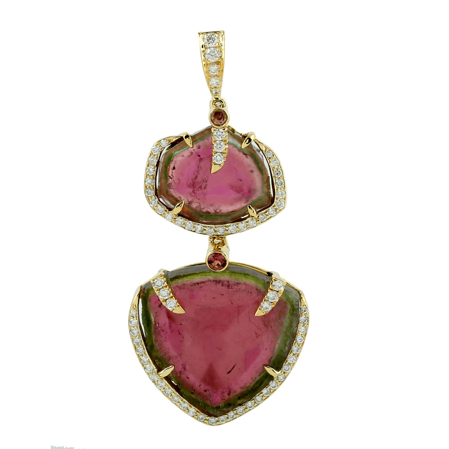 Tourmaline Melon Pink Tourmaline Pave Diamond Designer Pendant In Yellow Gold