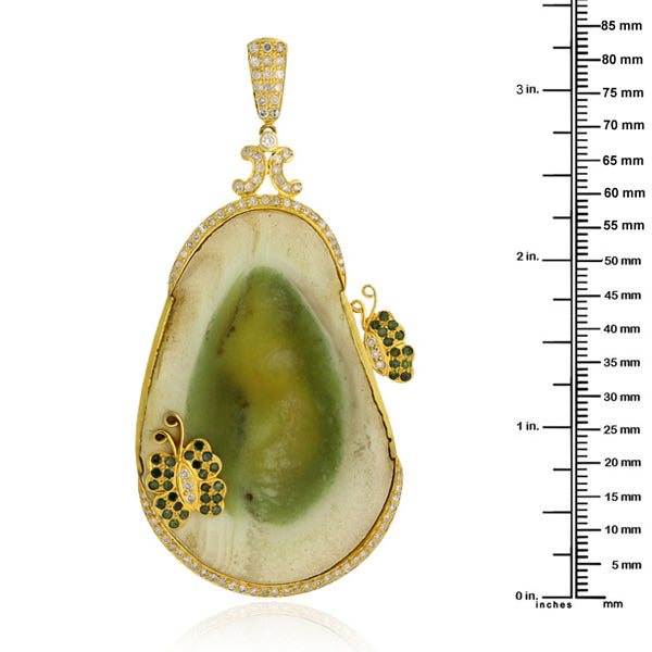 Jasper Pave Diamond In 18k Yellow Gold Handmade Designer Butterfly Pendant