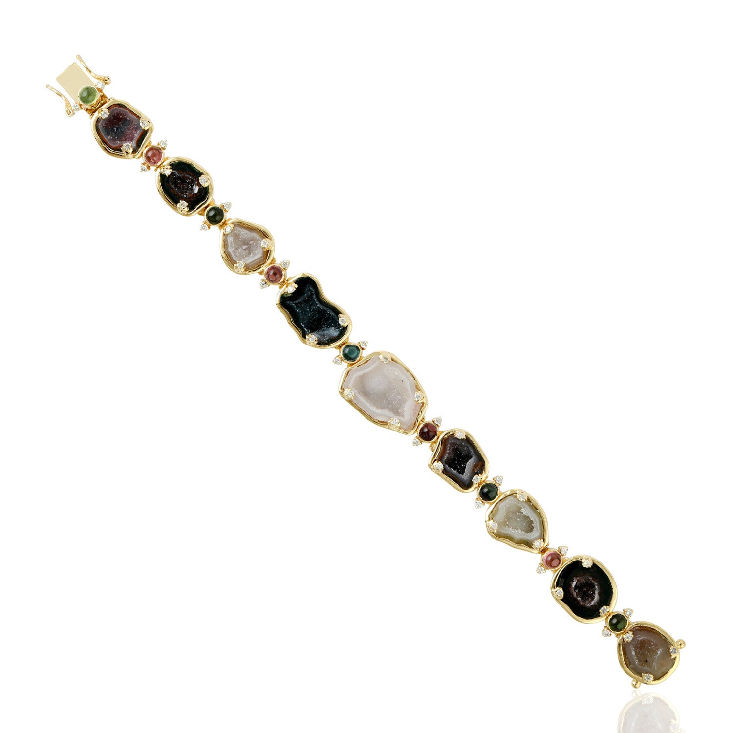 Geode Multi Tourmaline Prong Diamond Bracelet In 18k Yellow Gold 925 Silver
