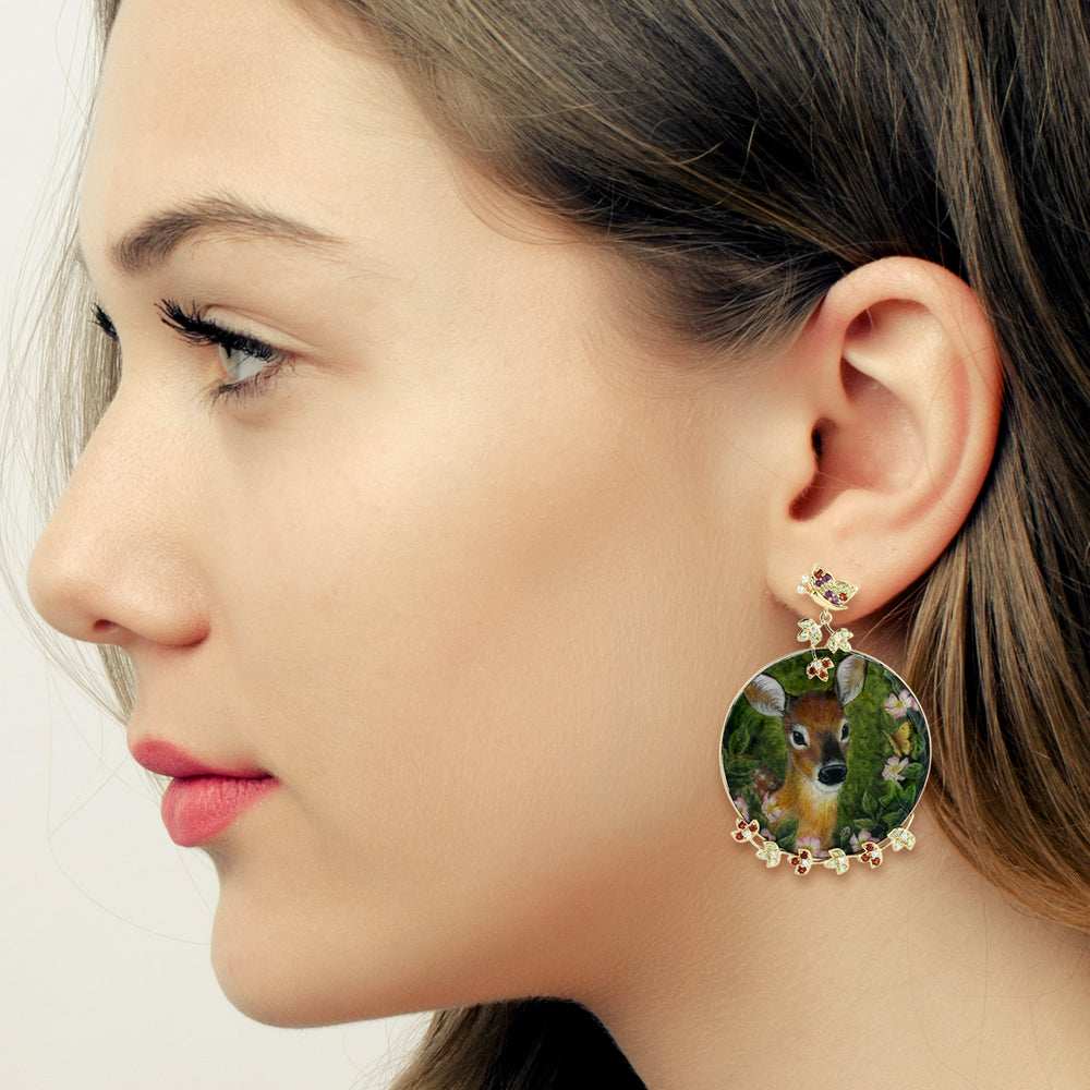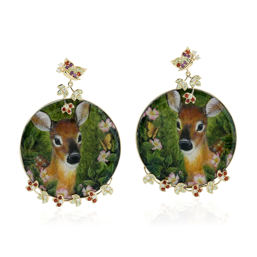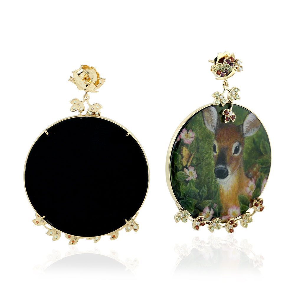 Peridot Garnet Amethyst Pave Diamond Bakelite Butterfly Dangler In 18k Yellow Gold