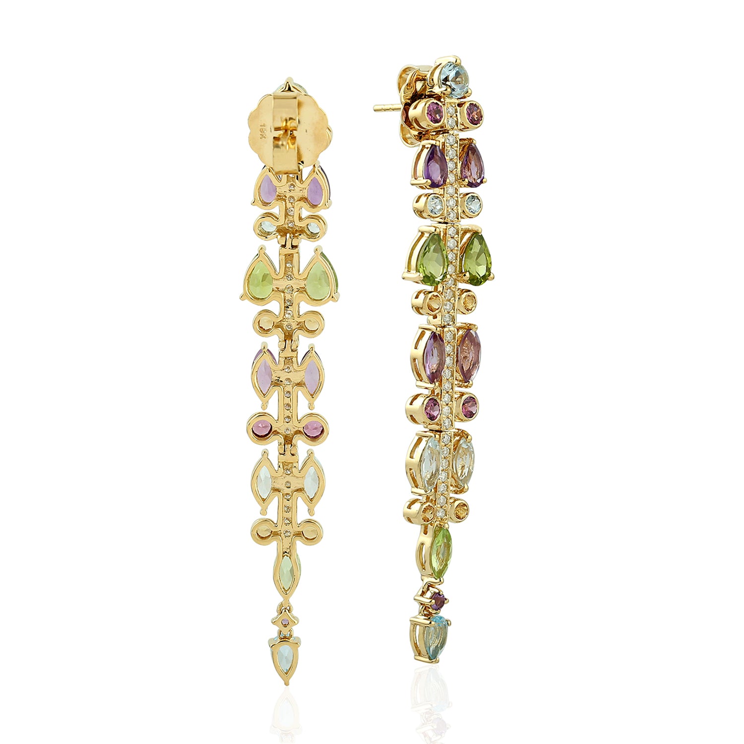 Amethyst Peridot Multi Gemstone Pave Diamond Dangler In 18k Yellow Gold