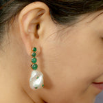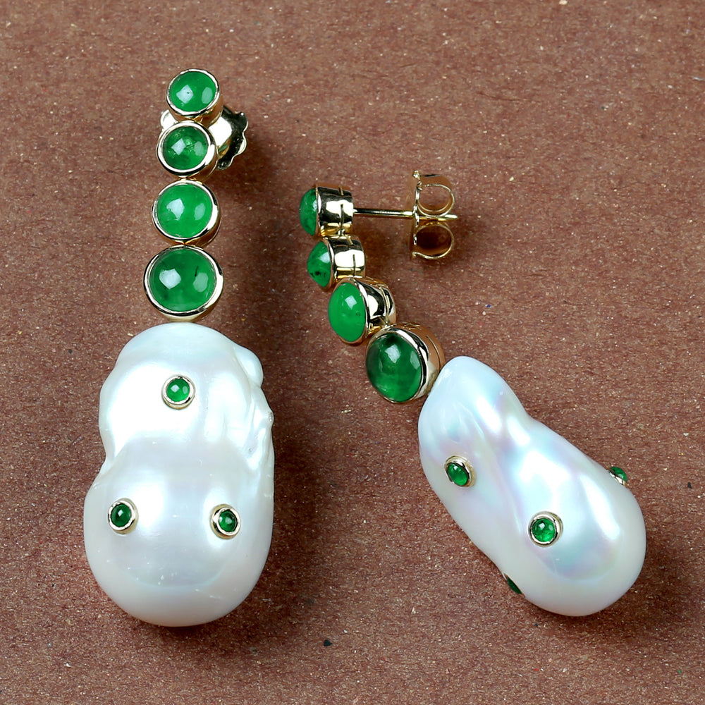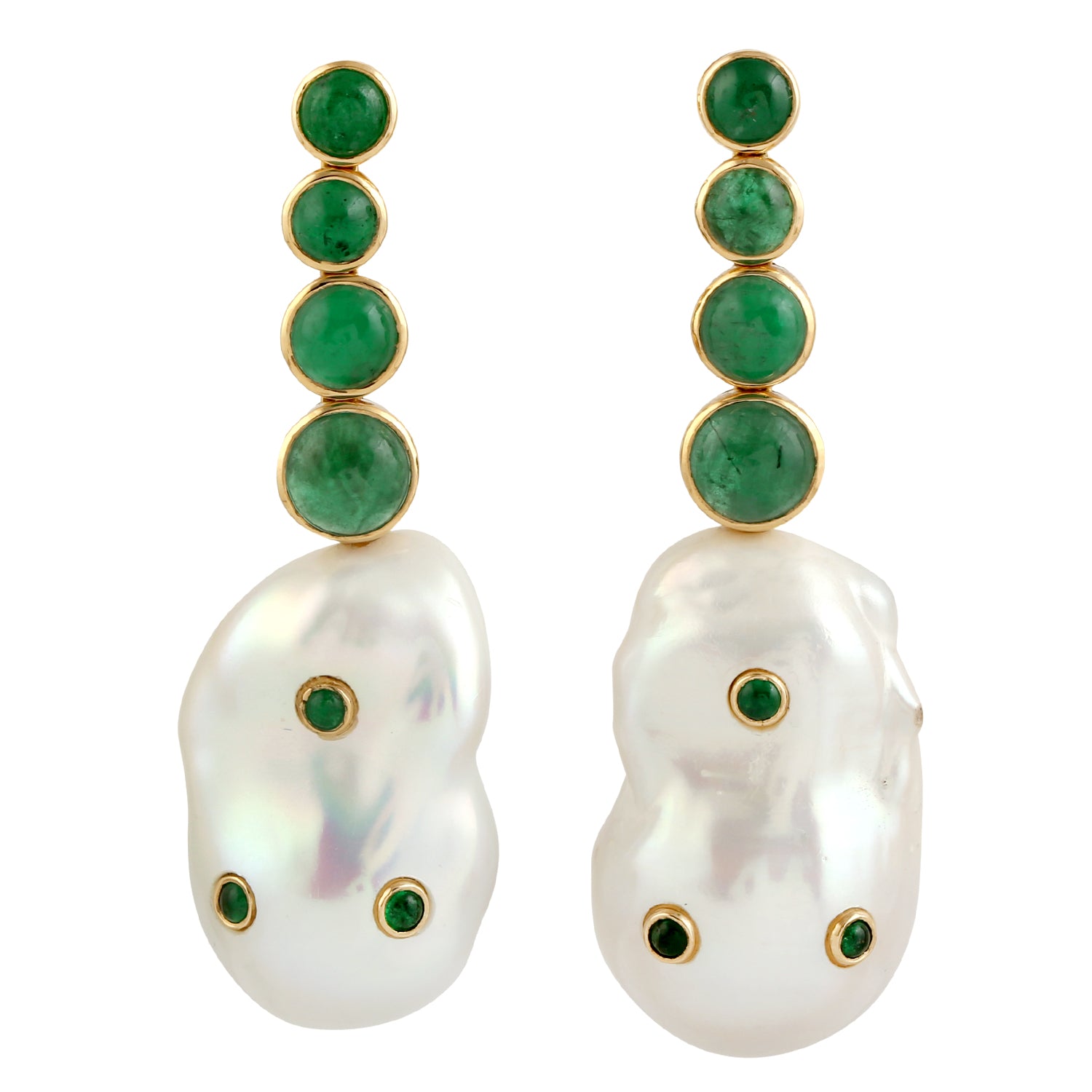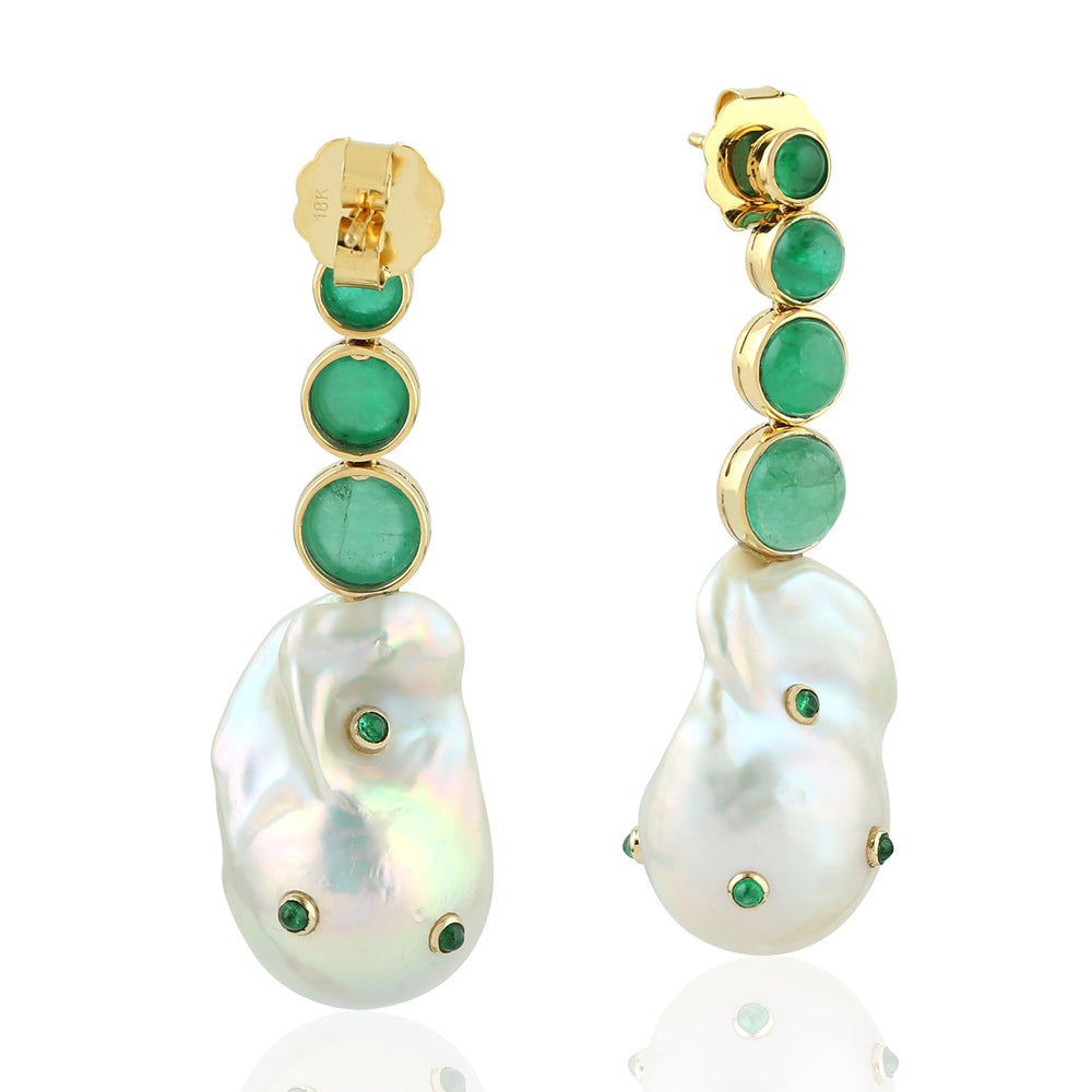 Unshaped Pearl Bezel Emerald Drop/Dangle In Yellow Gold Handmade Jewelry