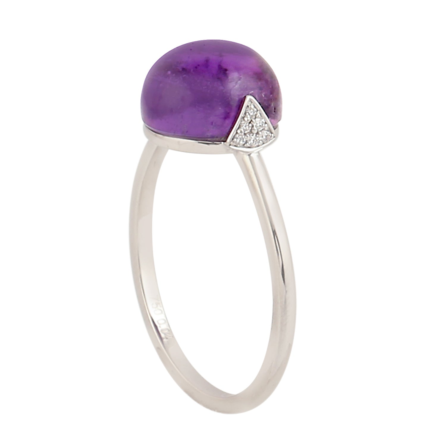Amethyst Gemstone Pave Diamond Designer Ring In 18k White Gold