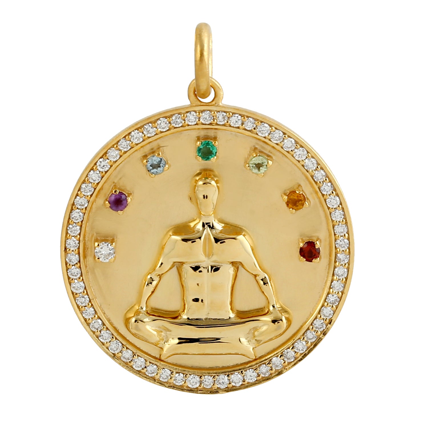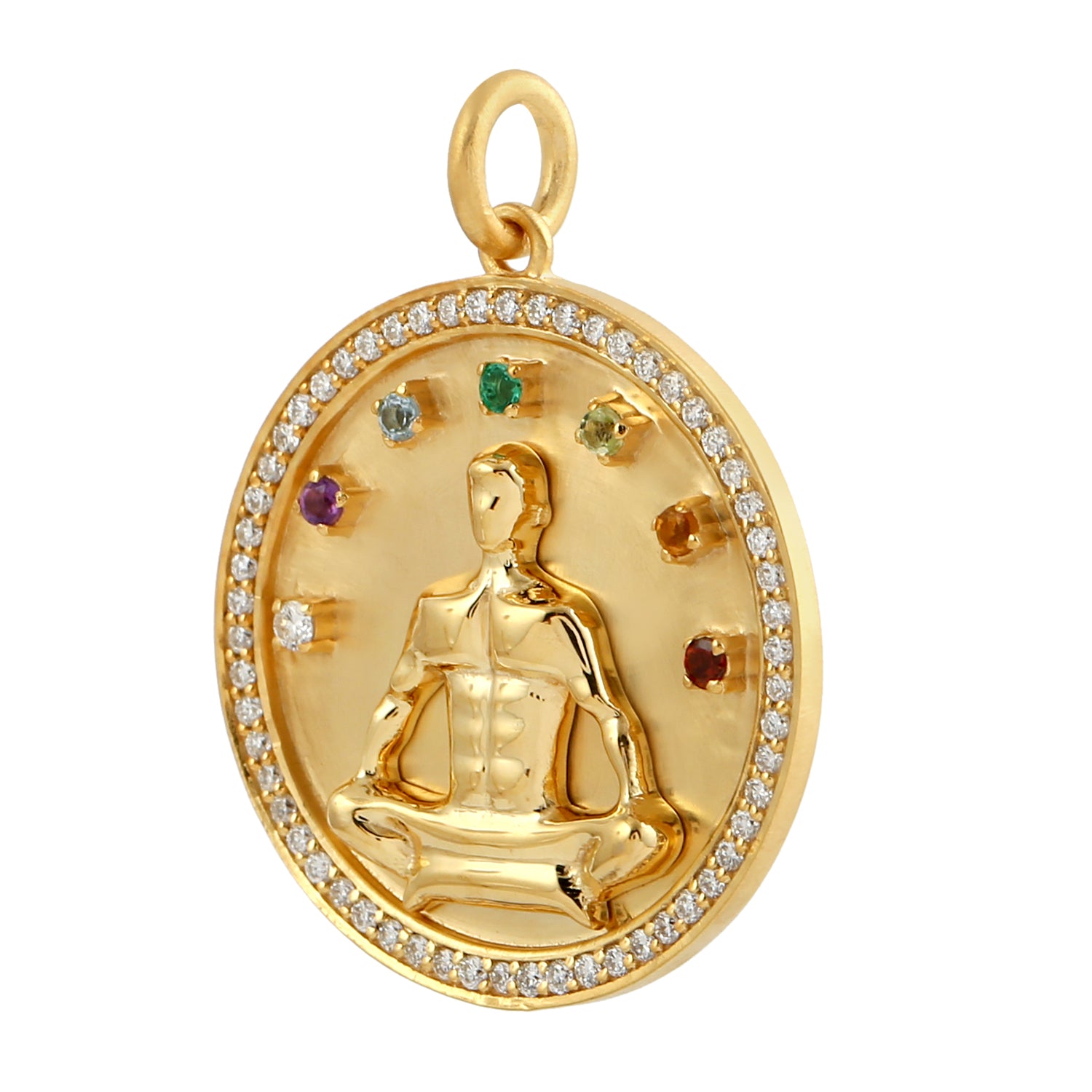 Amethyst Multi Gemstone Pave Diamond Padma Sana Yoga Mudra Pendant in Yellow Gold