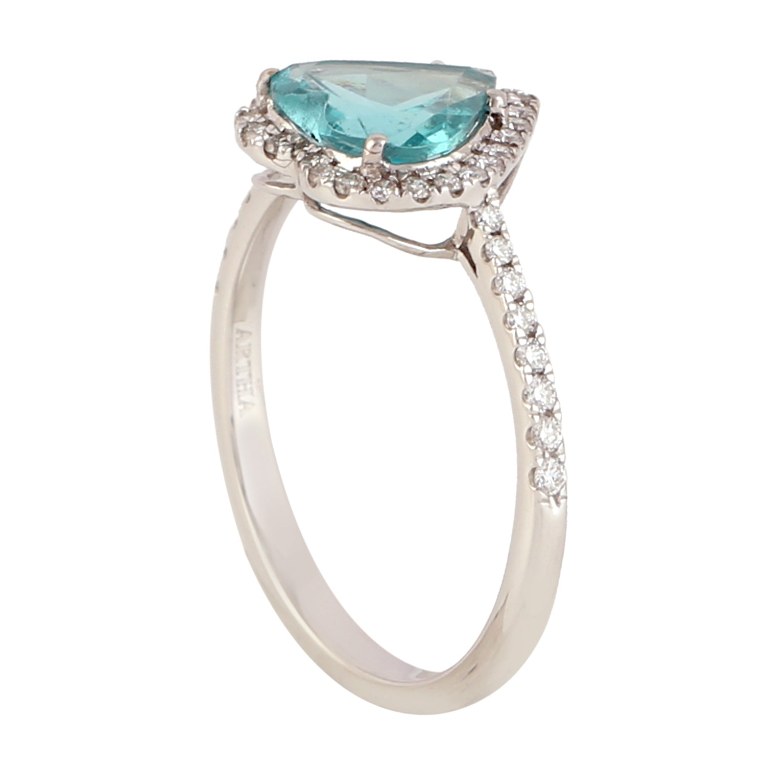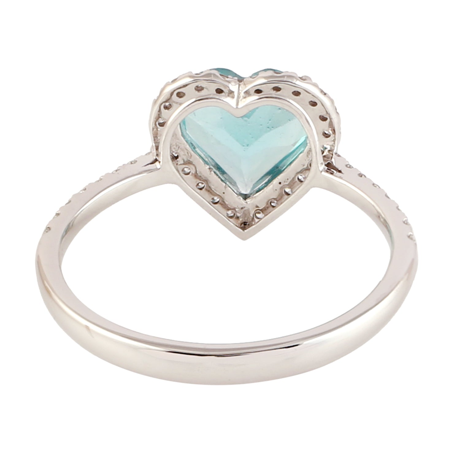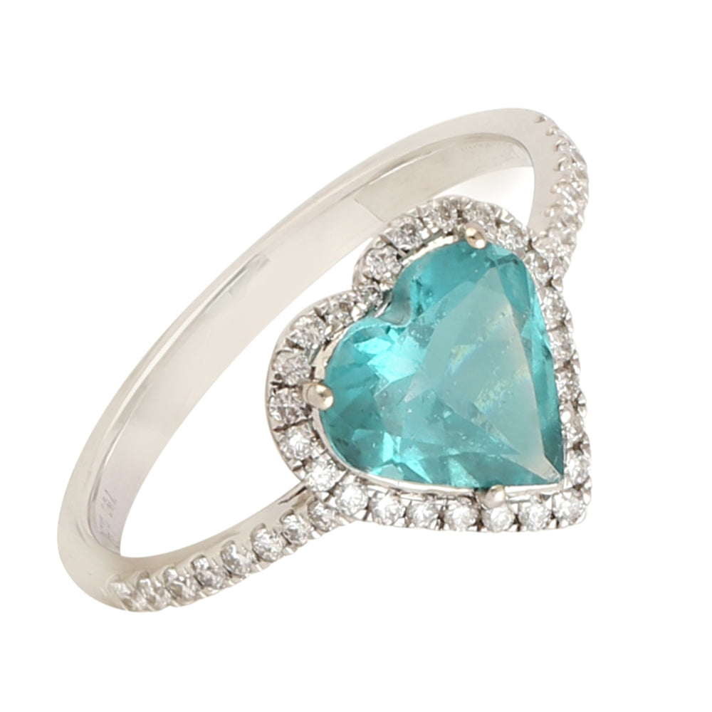 18K White Gold Apatite Gemstone Heart Ring with Pave Diamonds