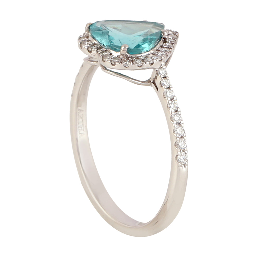 • 18K White Gold Apatite Gemstone Heart Ring with Pave Diamonds