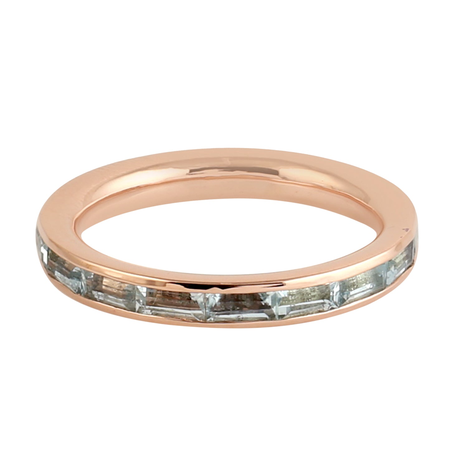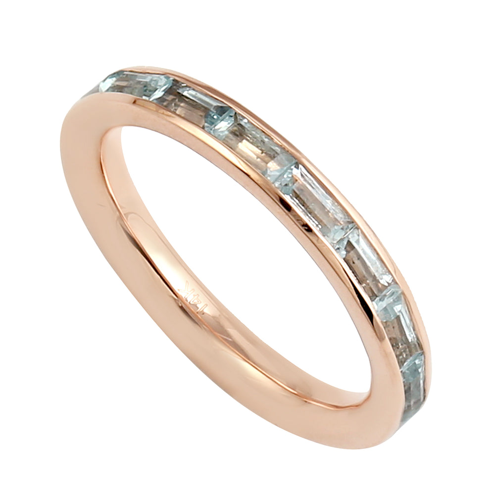 Rose Gold Full Eternity Band Ring with Baguette Cut Aquamarine – Delicate Stackable Gemstone Ring