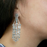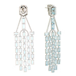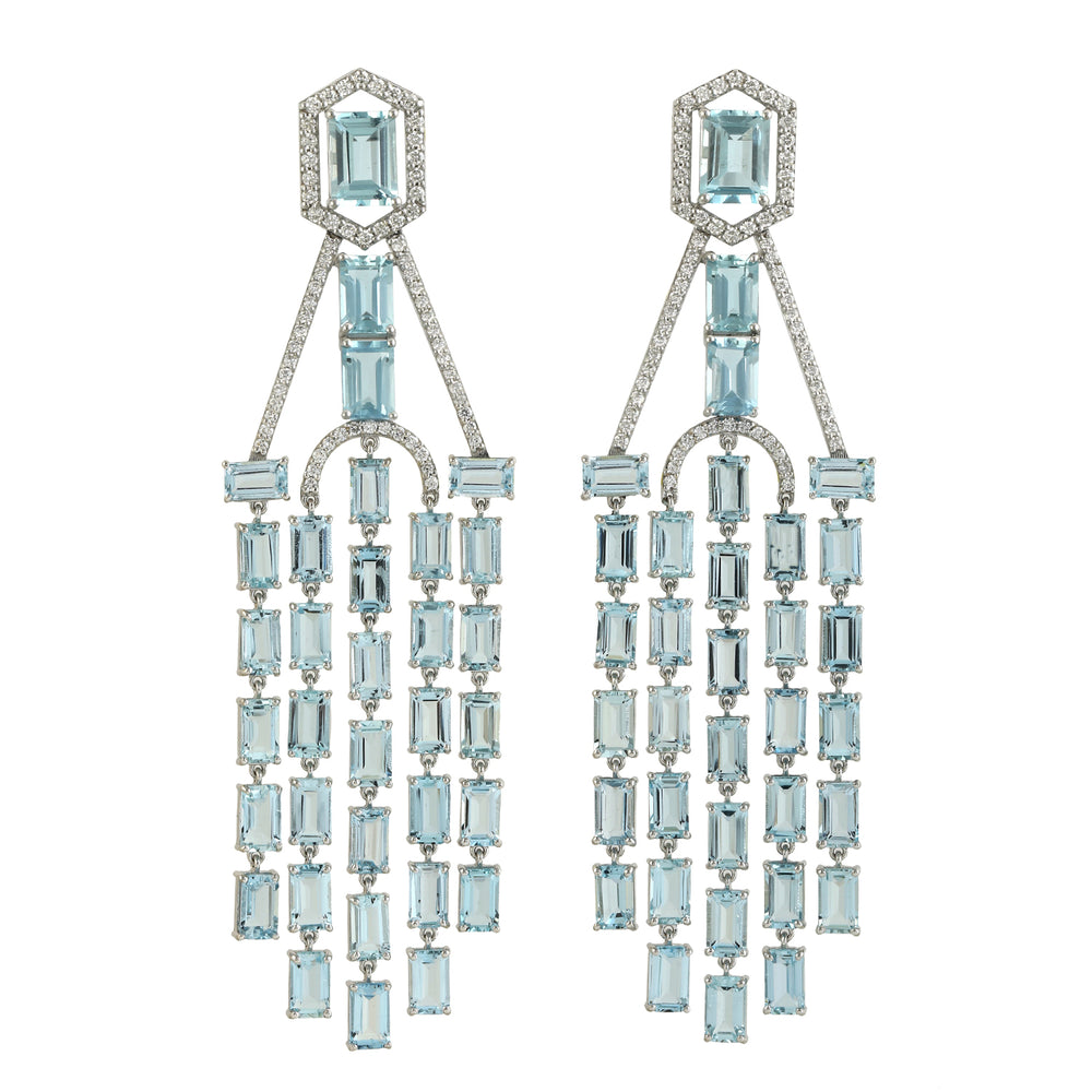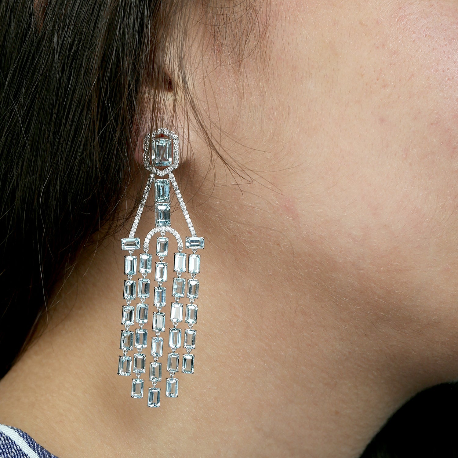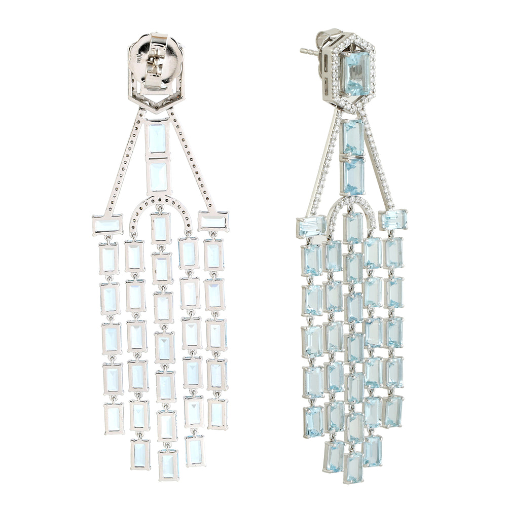Baguette Aquamarine Gemstone Pave Diamond Chandelier Earrings In White Gold