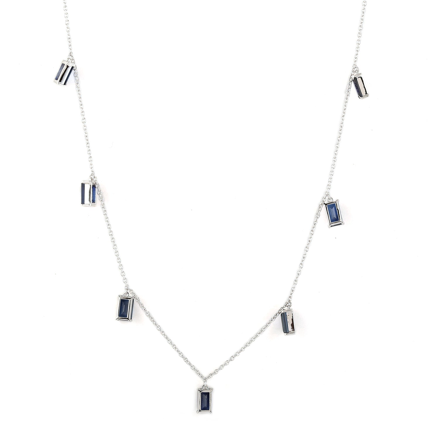 Baguette Blue Sapphire Station Necklace in 18K White Gold – Princess Style Gemstone Jewelry