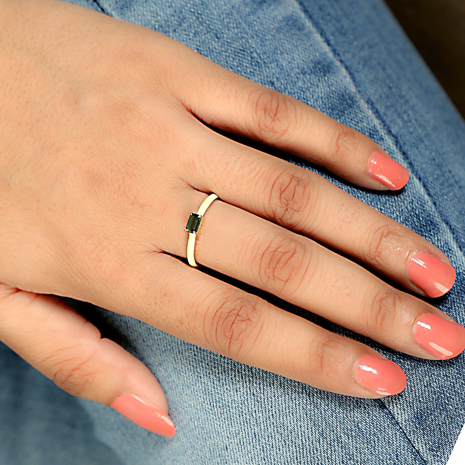Baguette Green Tourmaline Gemstone Enamel Band Ring In Yellow Gold