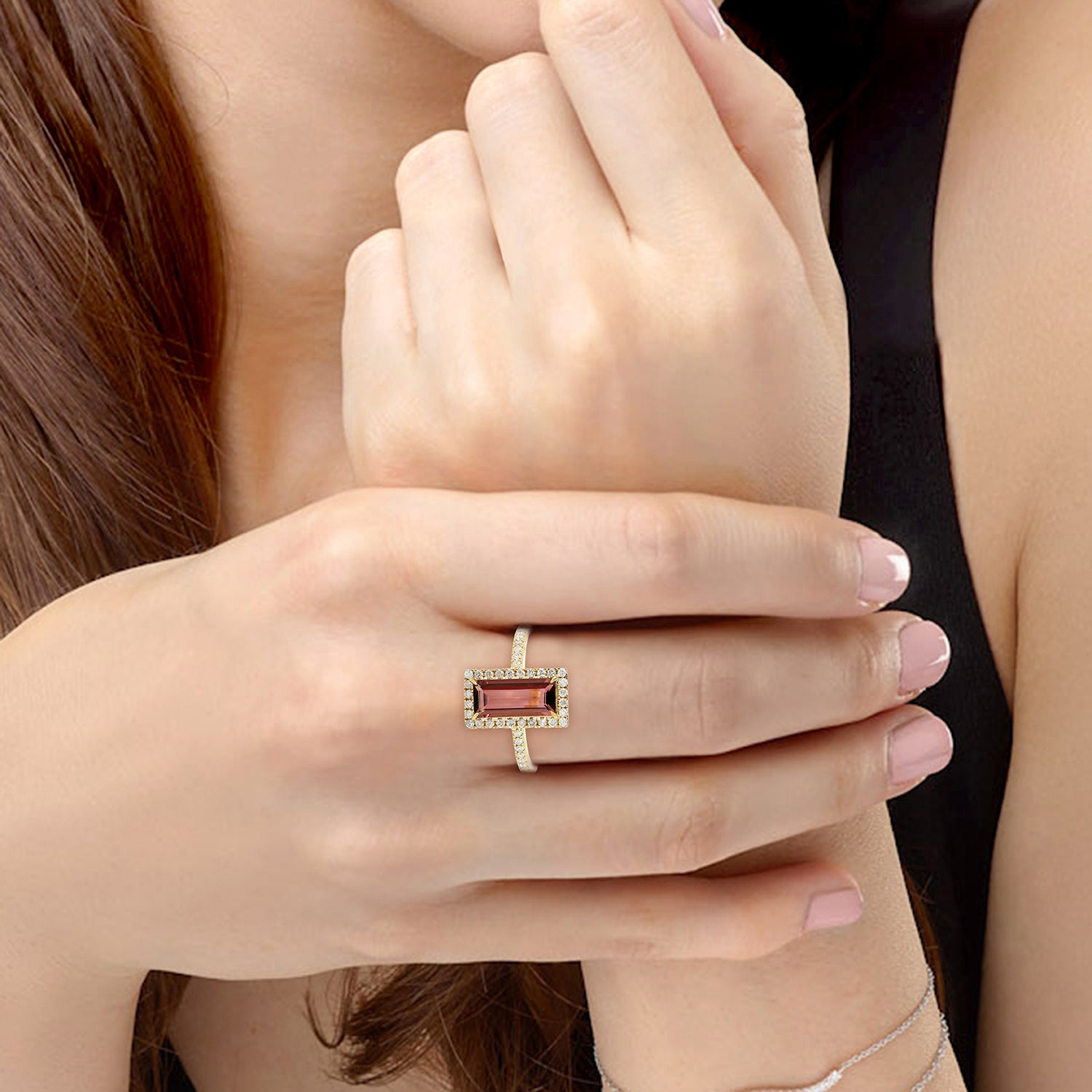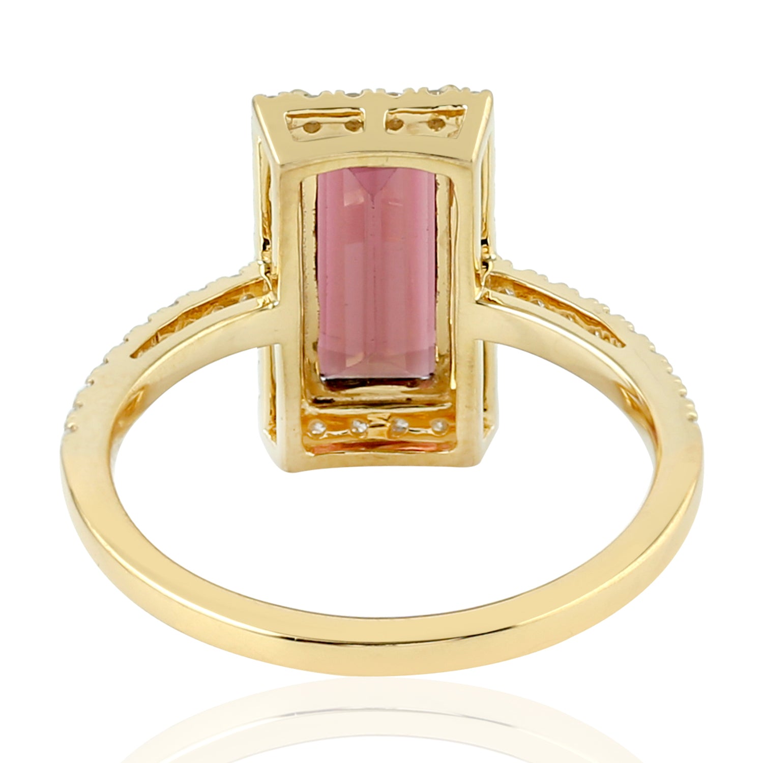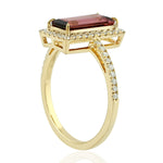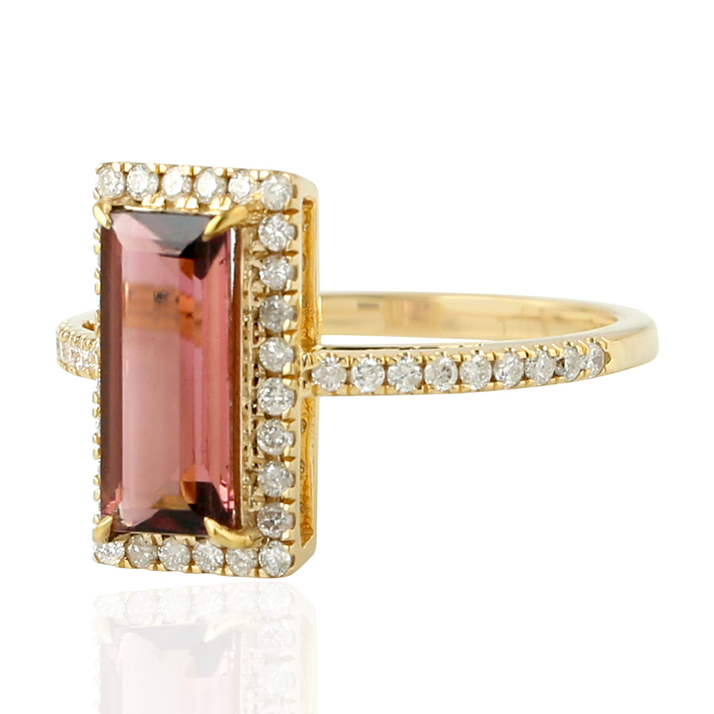 Baguette Pink Tourmaline Pave Diamond In 18k Yellow Gold Cocktail Ring