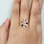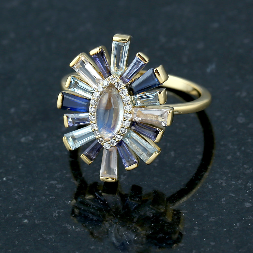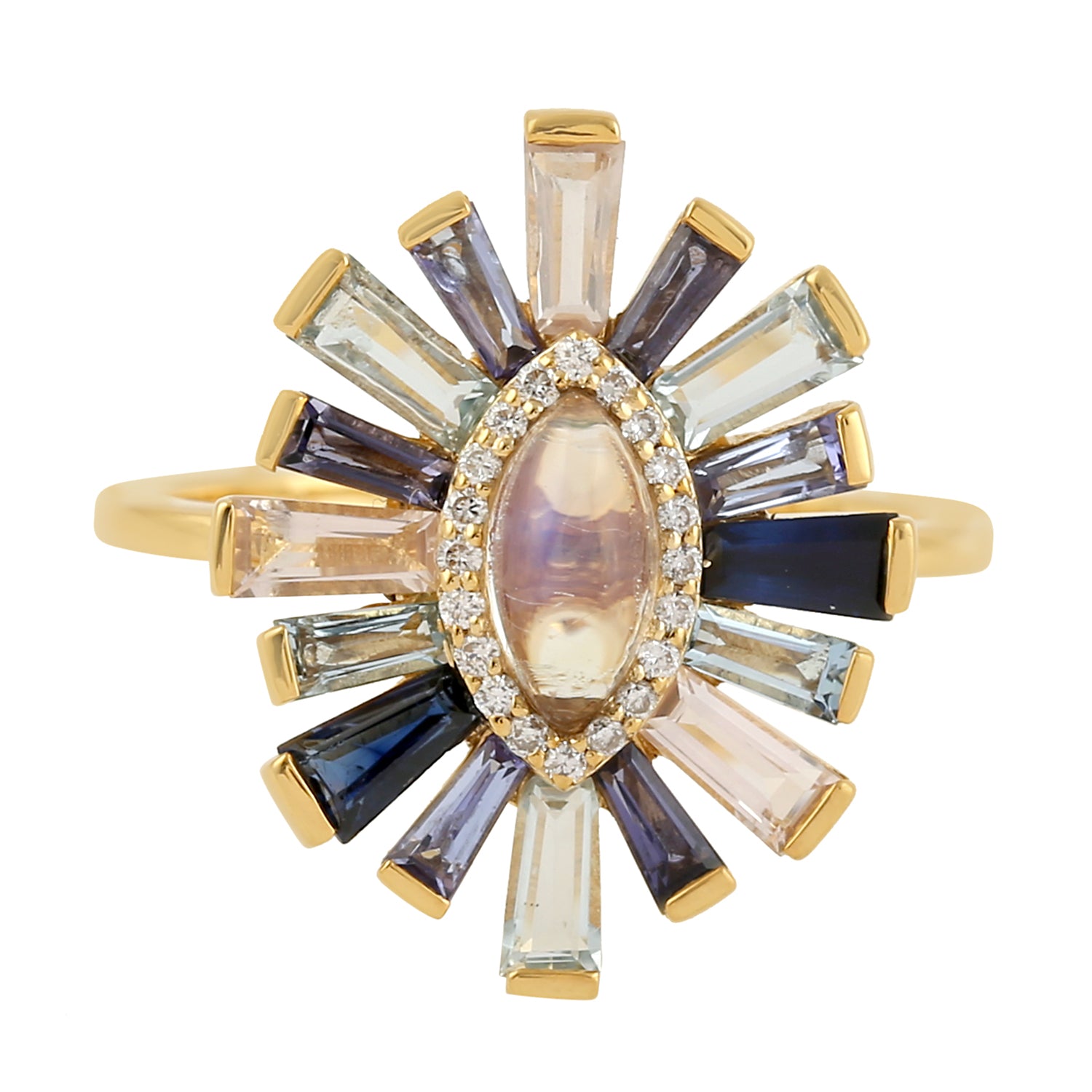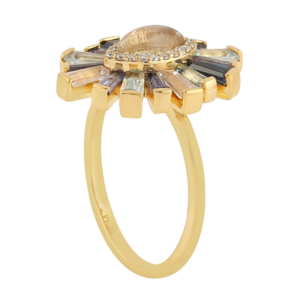 Baguette Topaz Multi-Gemstone Pave Diamond Cocktail Ring in Yellow Gold – Statement Jewelry for Women