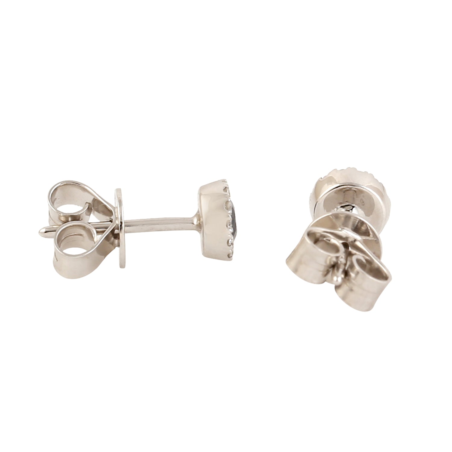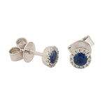 Blue Sapphire Gemstone Pave Diamond Halo Stud Earrings In 18k White Gold