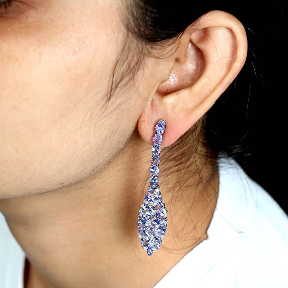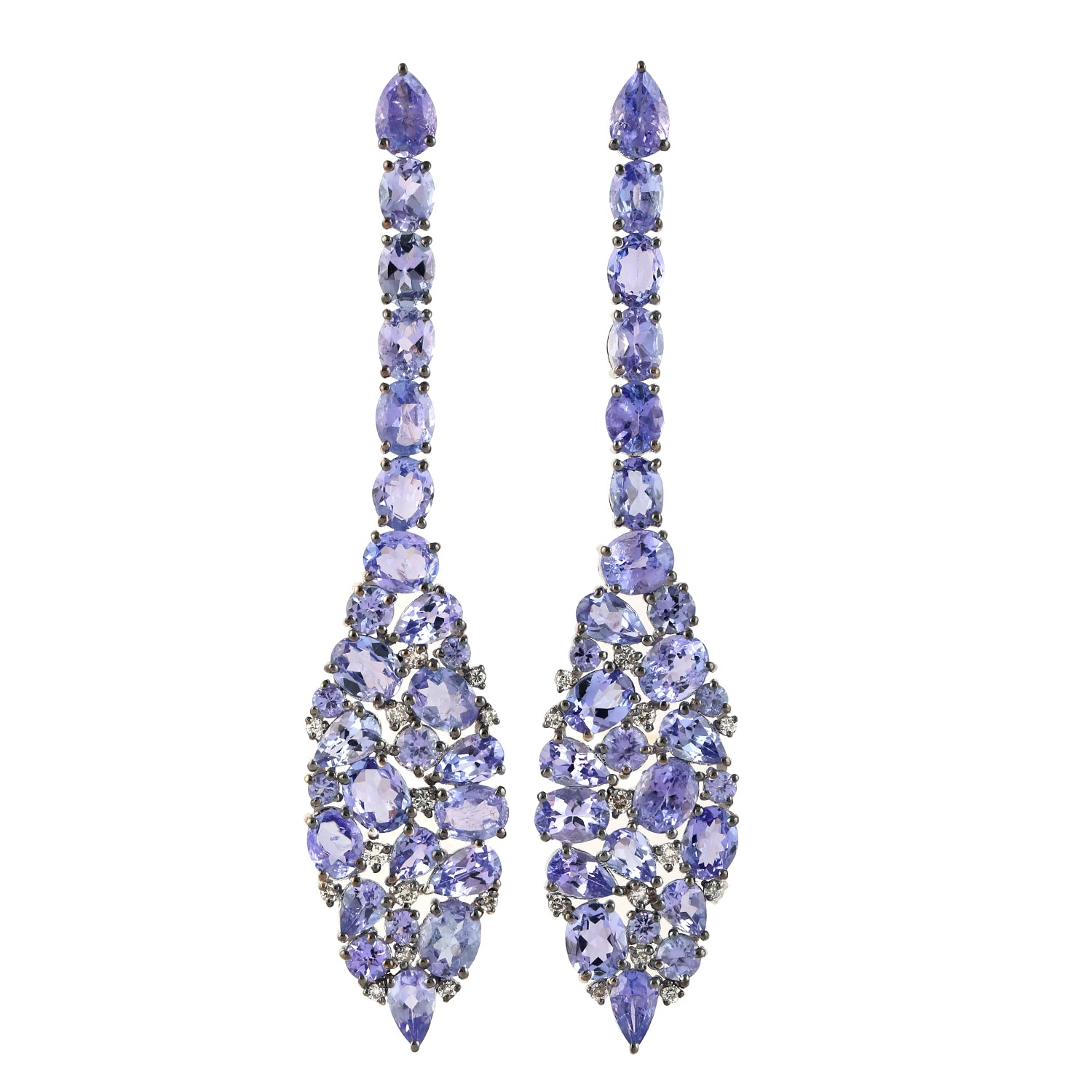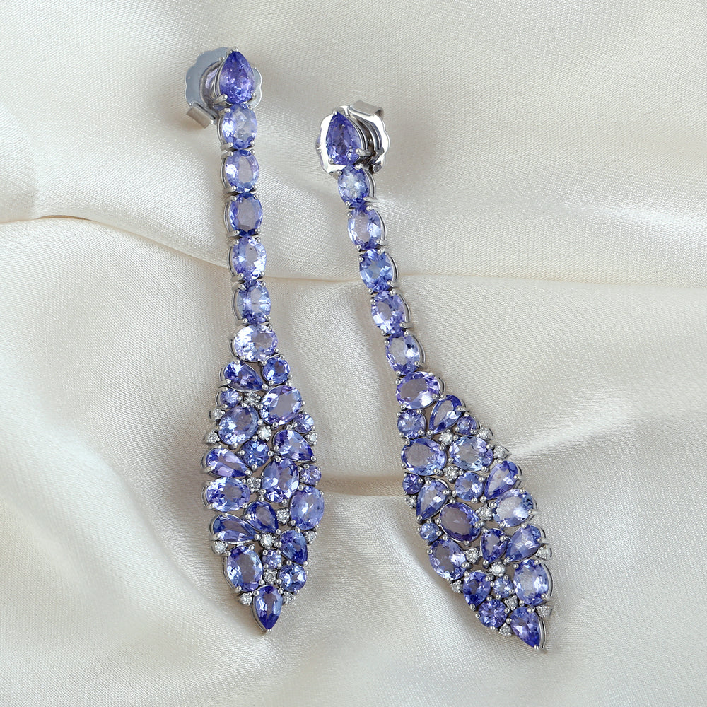 White Gold Oval Tanzanite Earrings with Pave Diamond – Elegant Gemstone Jewelry
