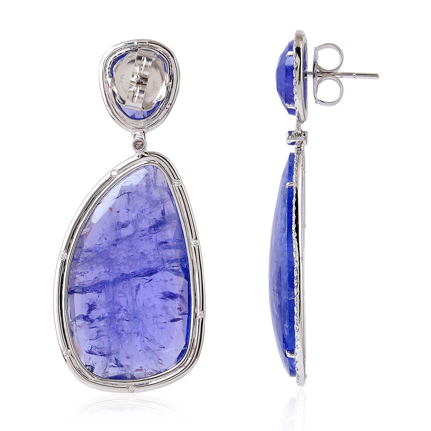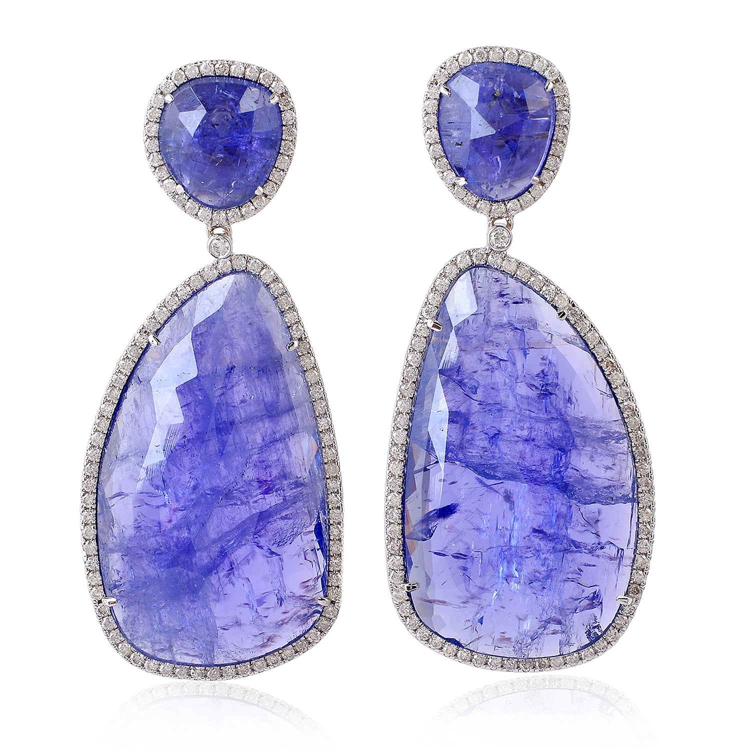 Unshaped Tanzanite Pave Diamond In 18k White Gold Beautiful Danglers For Her