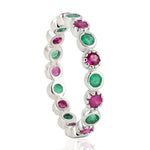 Emerald Bezel Ruby Gemstone Eternity Band Ring In 18K White Gold
