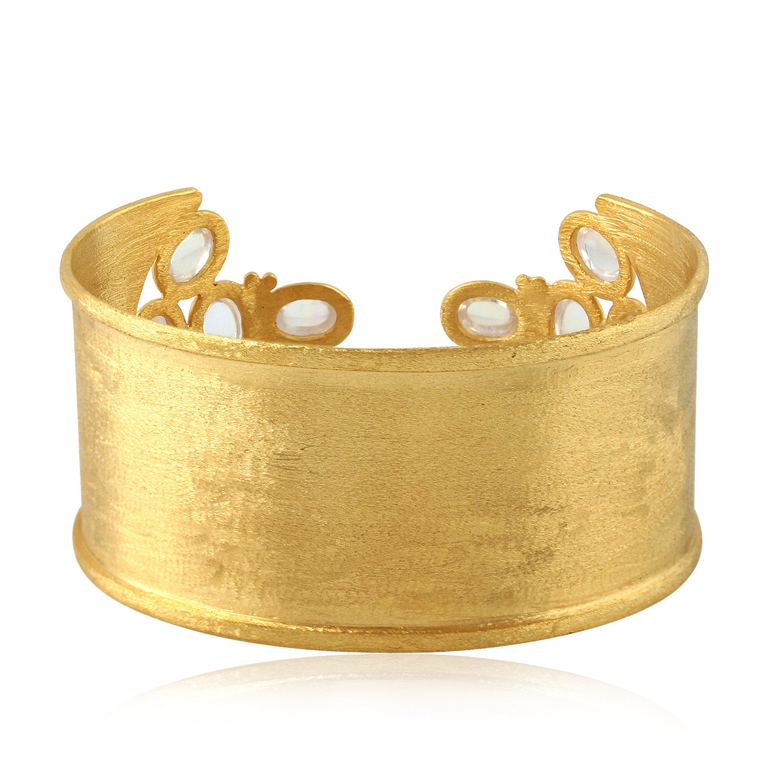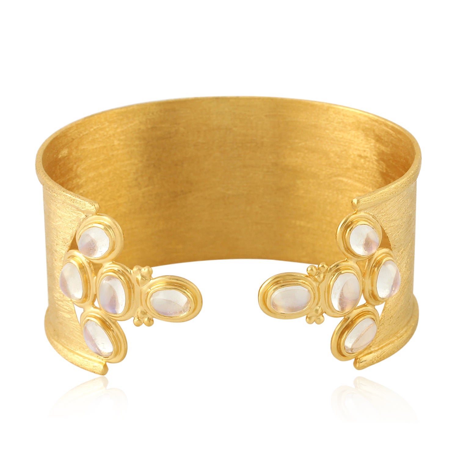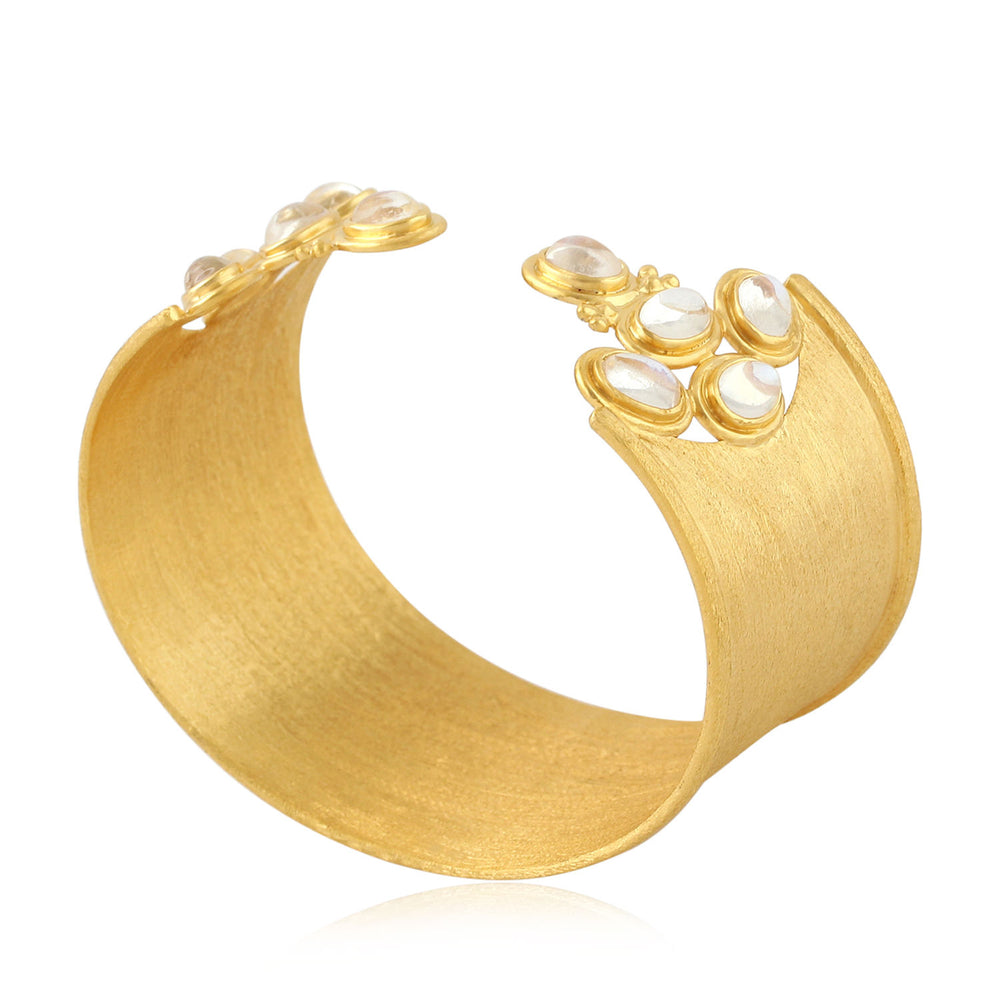 Bezel Set Moonstone Gemstone Designer Cuff Bracelet 18K Gold Handmade New Arrival Jewelry