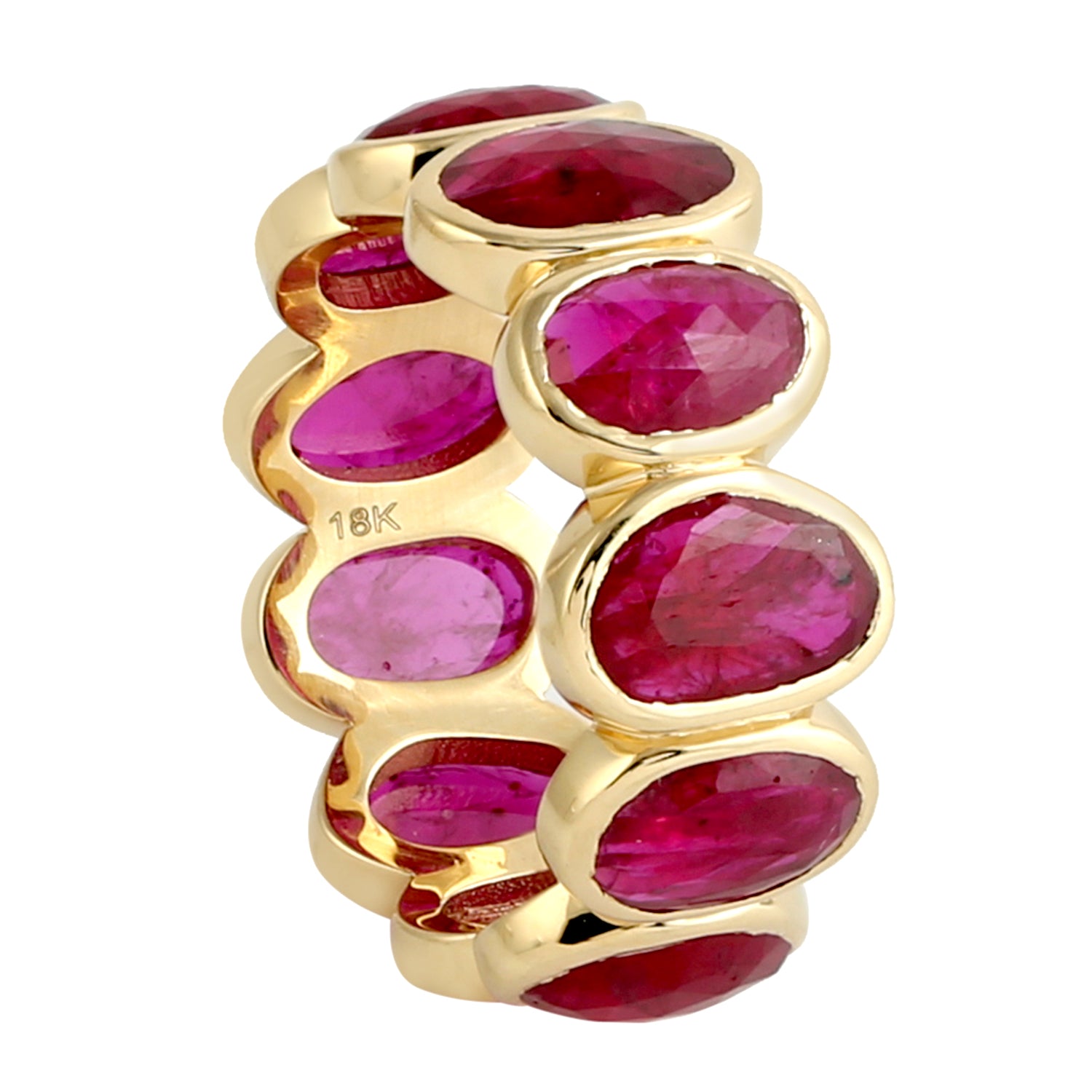 Bezel Ruby Gemstone July Birthstone Full Eternity Band Ring In 18k Yellow Gold