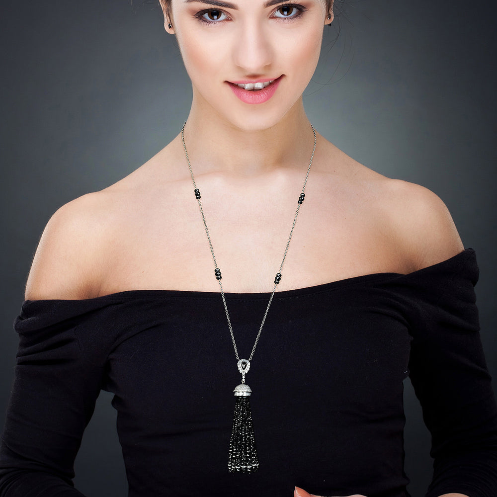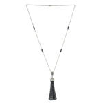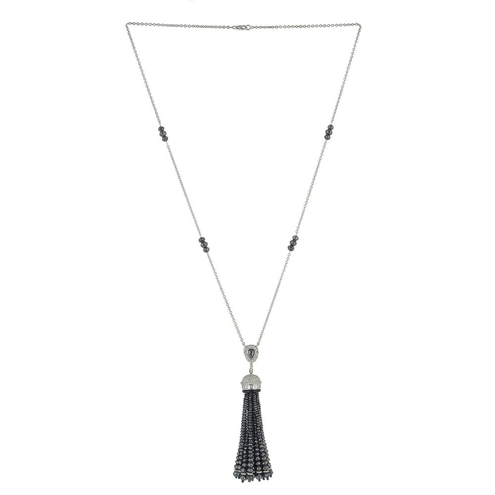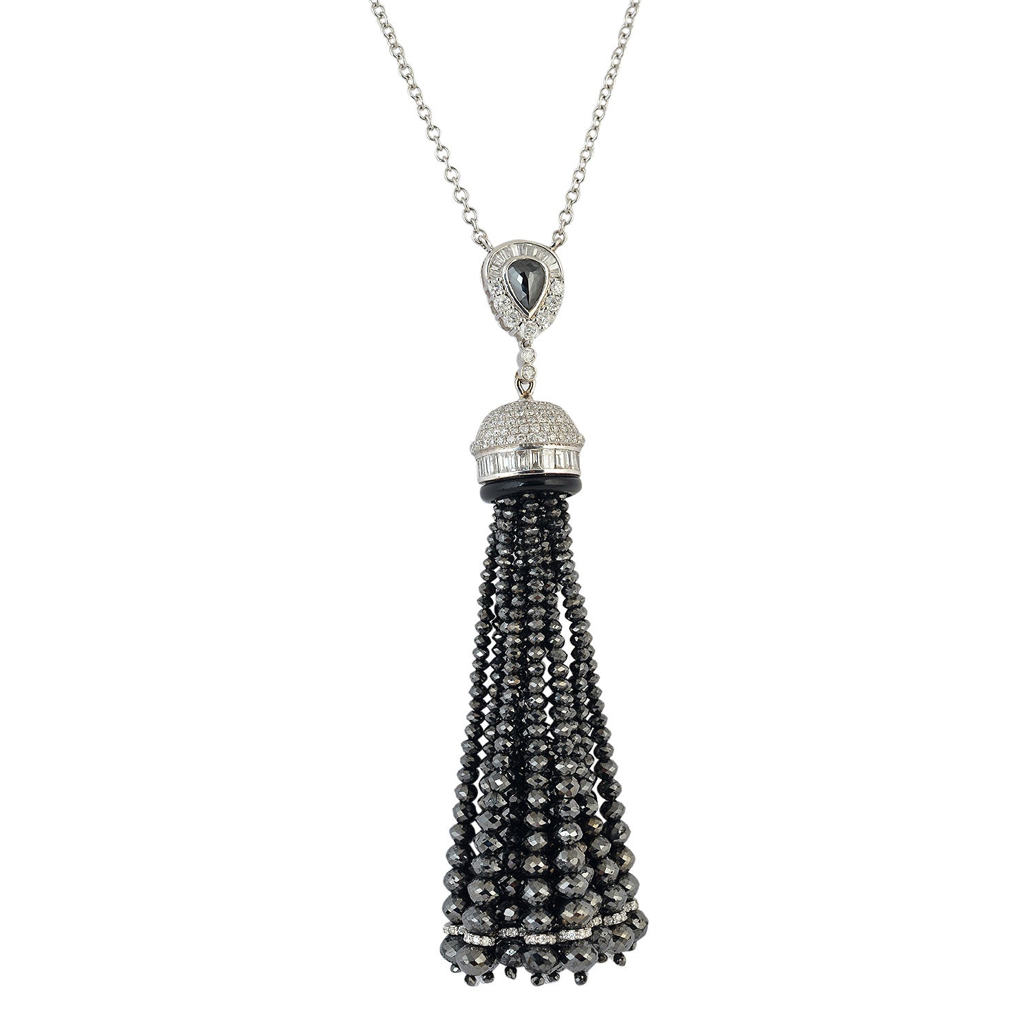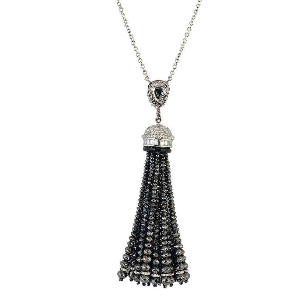 Black Washer Faceted Beads Diamond Round Onyx Tassel Matinee Necklace In White Gold Sale