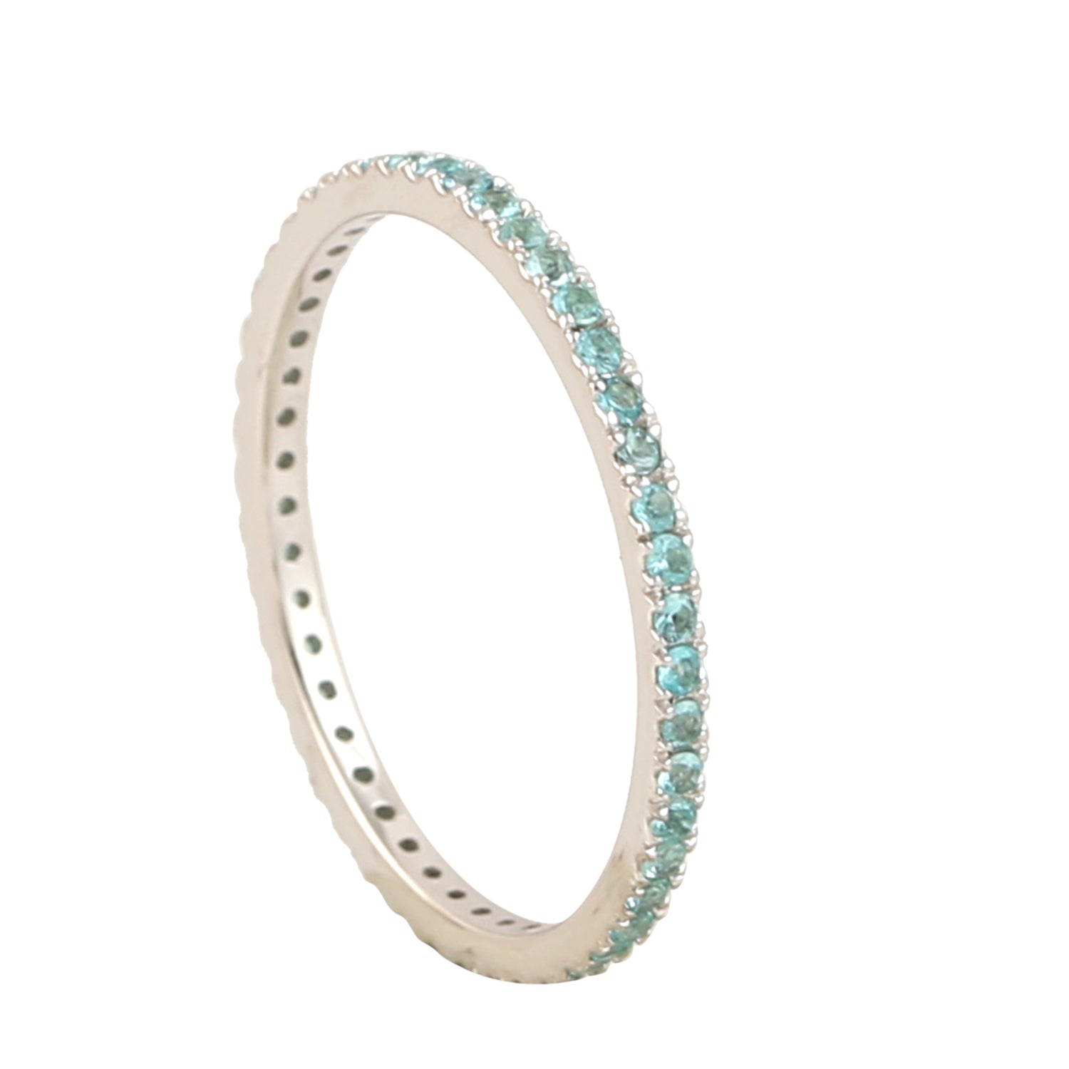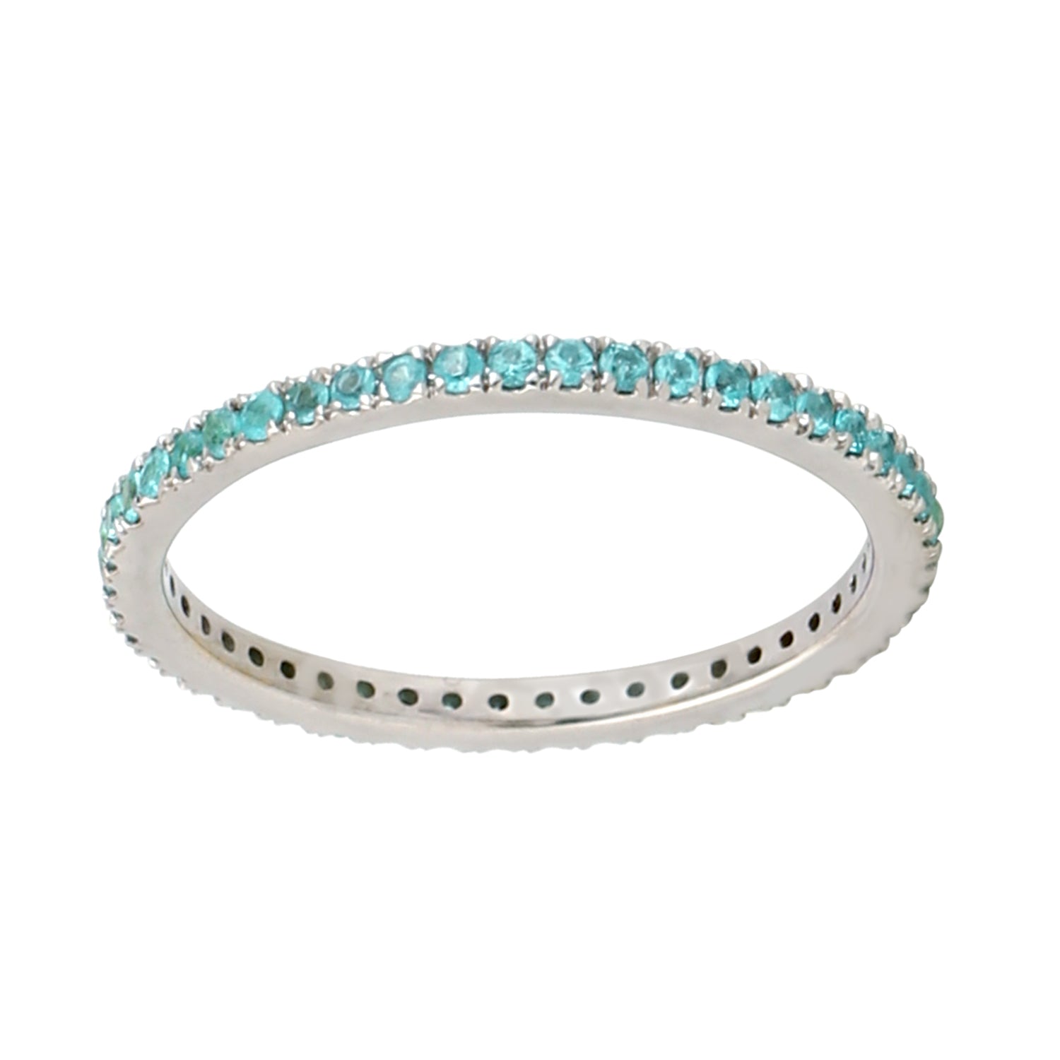 • Blue Paraiba Full Eternity Minimal Ring In 18k White Gold