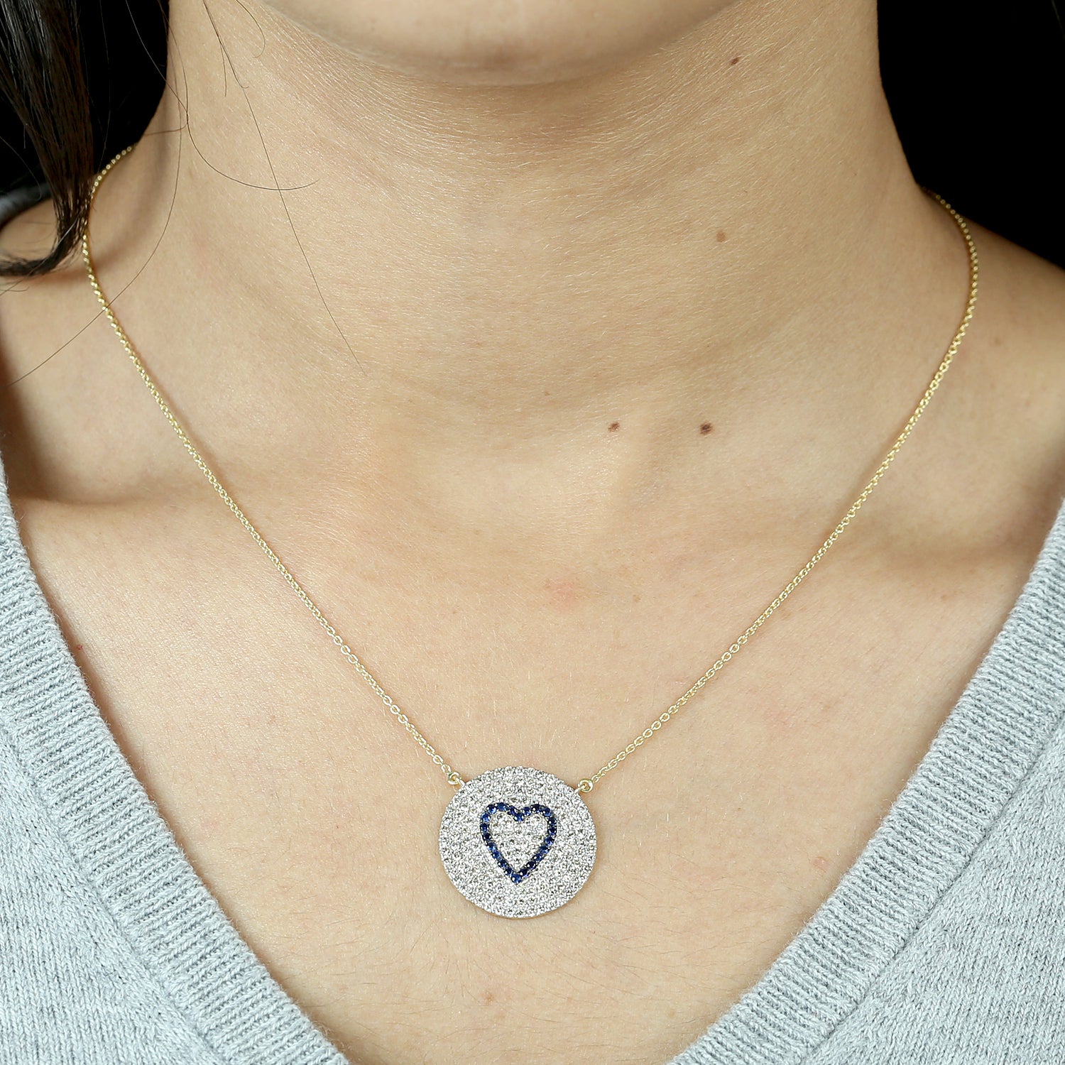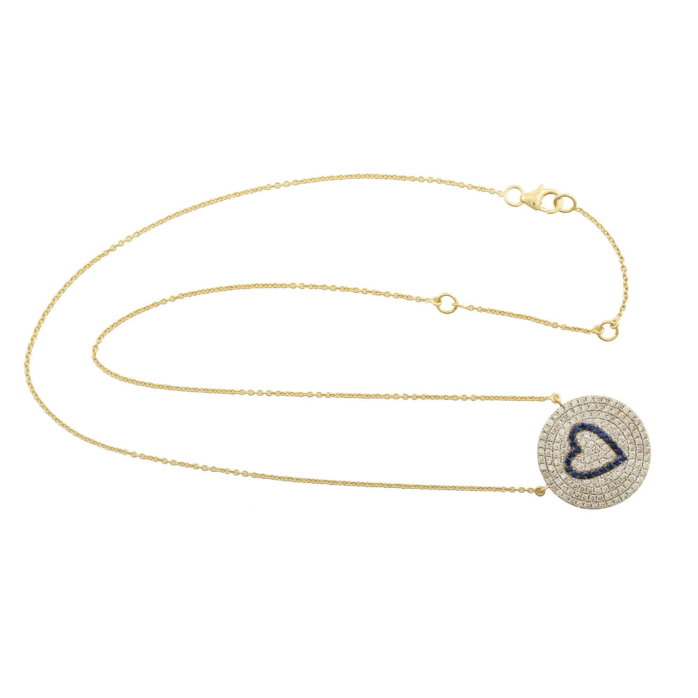 Blue Sapphire Pave Natural Diamond Heart Shape Choker Necklace In Gold For Women's