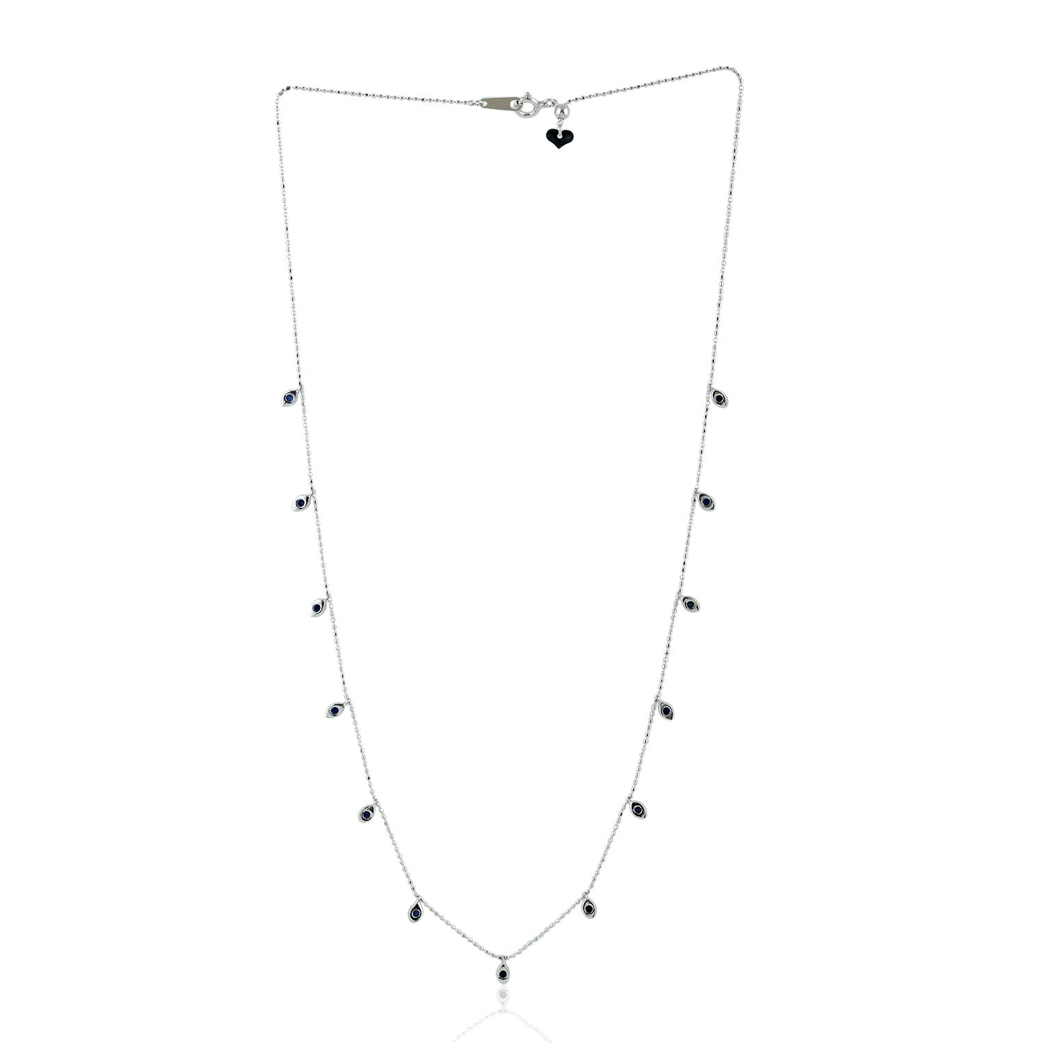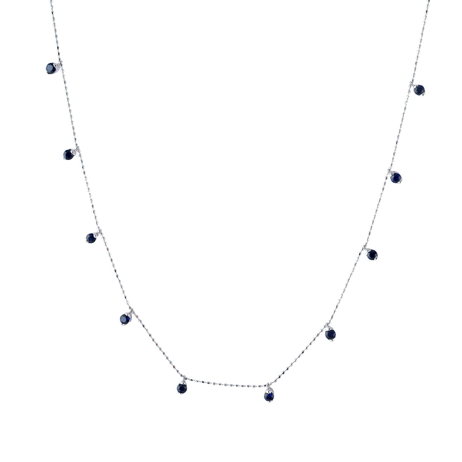 • Blue Sapphire Gemstone Station Chain Necklace In 18k White Gold